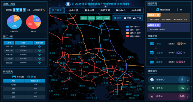 随着我国大量基础设施建设完成,交通存量资产的保值增值已成为关系到交通行业可持续发展的重要领域。为此,集团着力打造新一代资产管理系统,通过数字化手段快速获取最新数据,并利用大数据分析理论,形成基础设施结构与性能联网监测与预警体系、环境联网监测与预警体系和安全联网监测与预警体系,为养护和管理决策提供科学依据与指导。