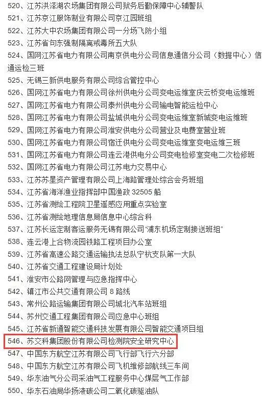 江苏省总工会公布2020年“江苏省工人先锋号”入选名单,集团检测研究院安全研究中心位列其中。此次被授予“江苏省工人先锋号”荣誉称号是对安全研究中心在打造交通强国江苏样板、支撑保障“强富美高”新实践中所做工作的充分认可。
