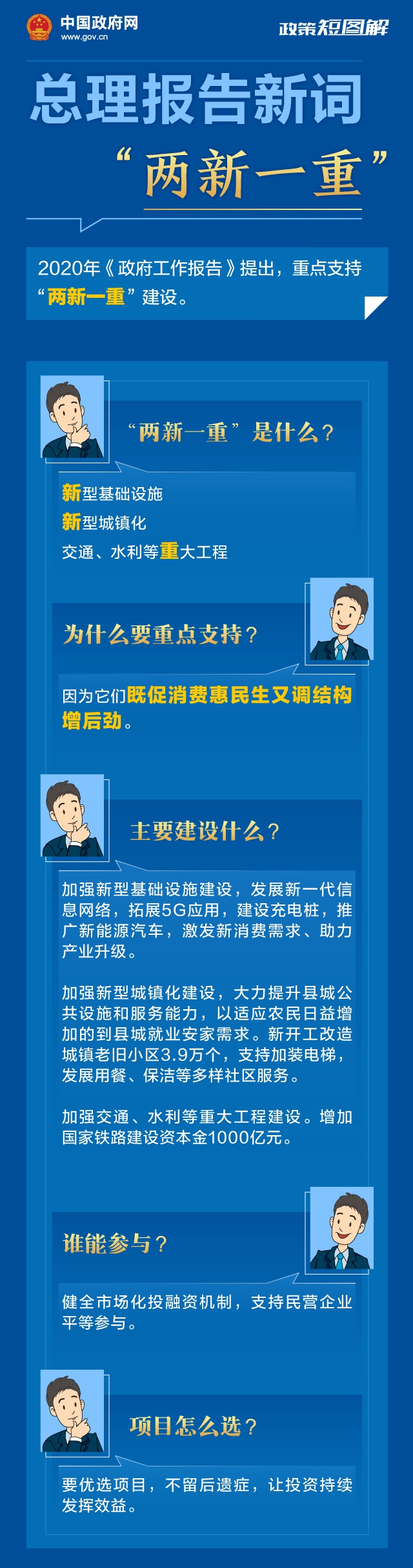 5月22日上午,第十三届全国人民代表大会第三次会议在北京人民大会堂开幕。国务院总理李克强代表国务院向大会作政府工作报告,部署今年发展主要目标和下一阶段工作,提出扩大有效投资,重点支持“两新一重”建设。