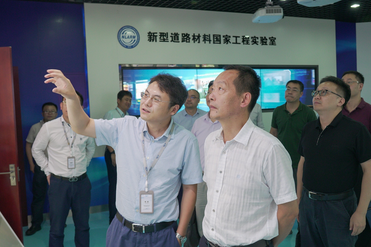▲ 江苏省住房和城乡建设厅副厅长陈浩东一行参观新型道路材料国家工程实验室、在役长大桥梁安全与健康国家重点实验室