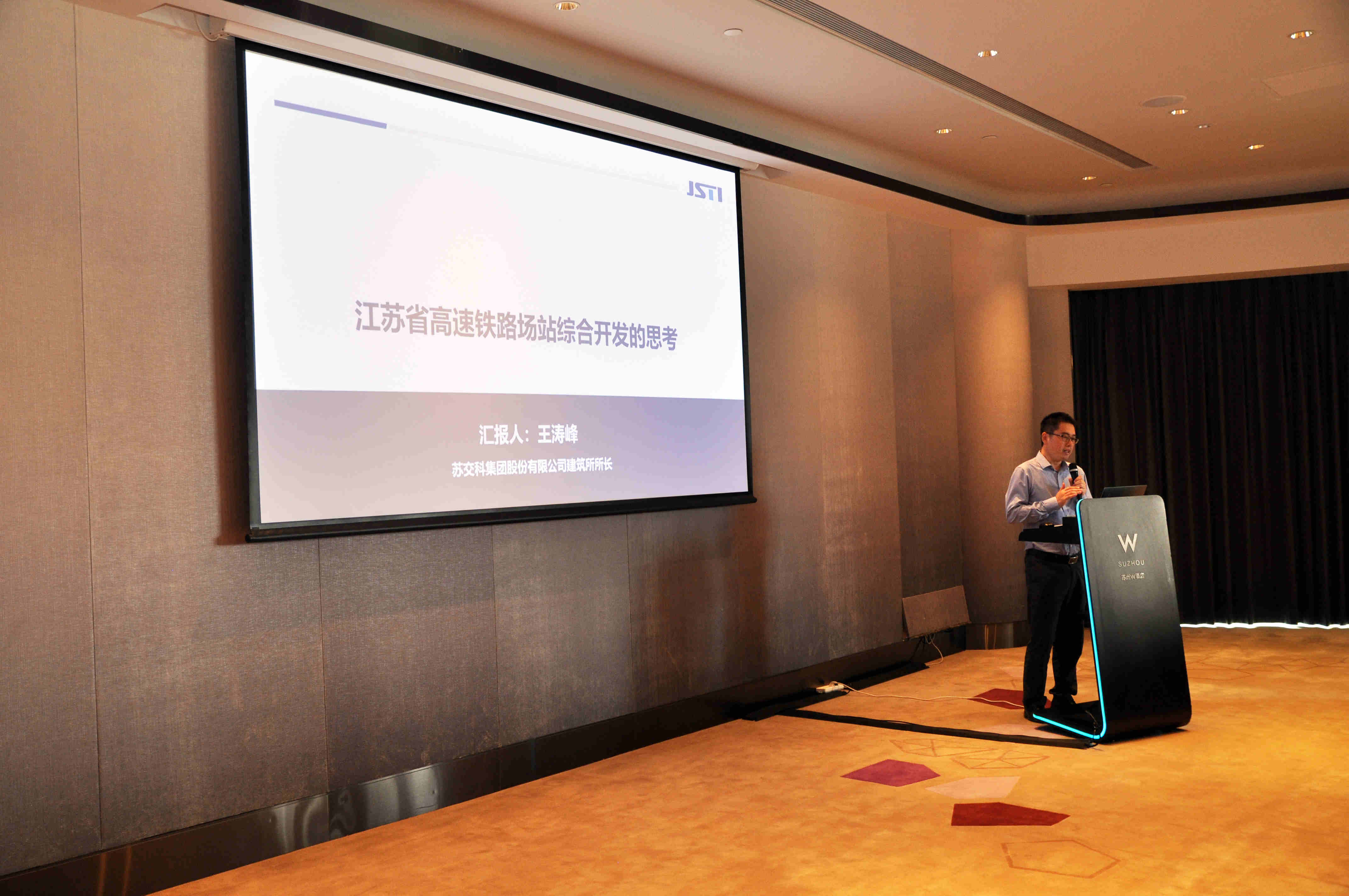集团轨道交通设计院建筑设计所王涛峰所长以《江苏省高速铁路场站综合开发的思考》为题作大会报告。简要介绍江苏省铁路综合开发政策背景、发展机遇及建设难点,阐述场站综合开发对铁路可持续发展的意义,结合“站城融合”新理念分析高速铁路场站综合开发涉及的政策、投融资、体制机制等内容。