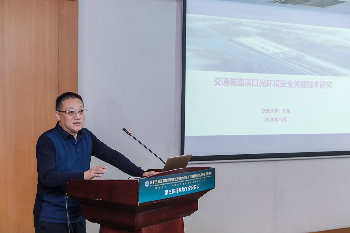 郑晅教授作《交通隧道洞口光环境安全关键技术研究》主题报告。通过分析隧道洞口光环境变化与安全识别间关系,提出基于驾驶人视觉特性的遮光安全指标,建立洞口防眩减光安全设置方法和 UGR 评价方法。该技术成功应用于国家重大项目深中通道、国内最长水下隧道苏锡常太湖隧道以及座城市隧道,大大提升隧道运营安全水平,促进隧道建设节能技术发展。