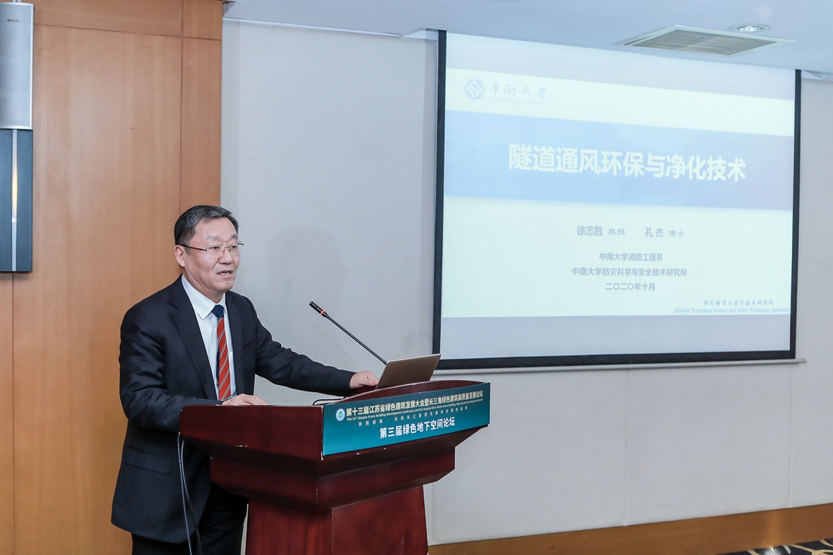 徐志胜教授作《隧道通风节能环保与空气净化技术》主题报告。针对城市隧道内汽车尾气造成的空气污染和通风能耗巨大等问题,提出隧道通风节能环保和净化除尘处理技术,展示团队前期研究工作与部分研究成果,探讨隧道通风节能环保与空气净化领域发展趋势。