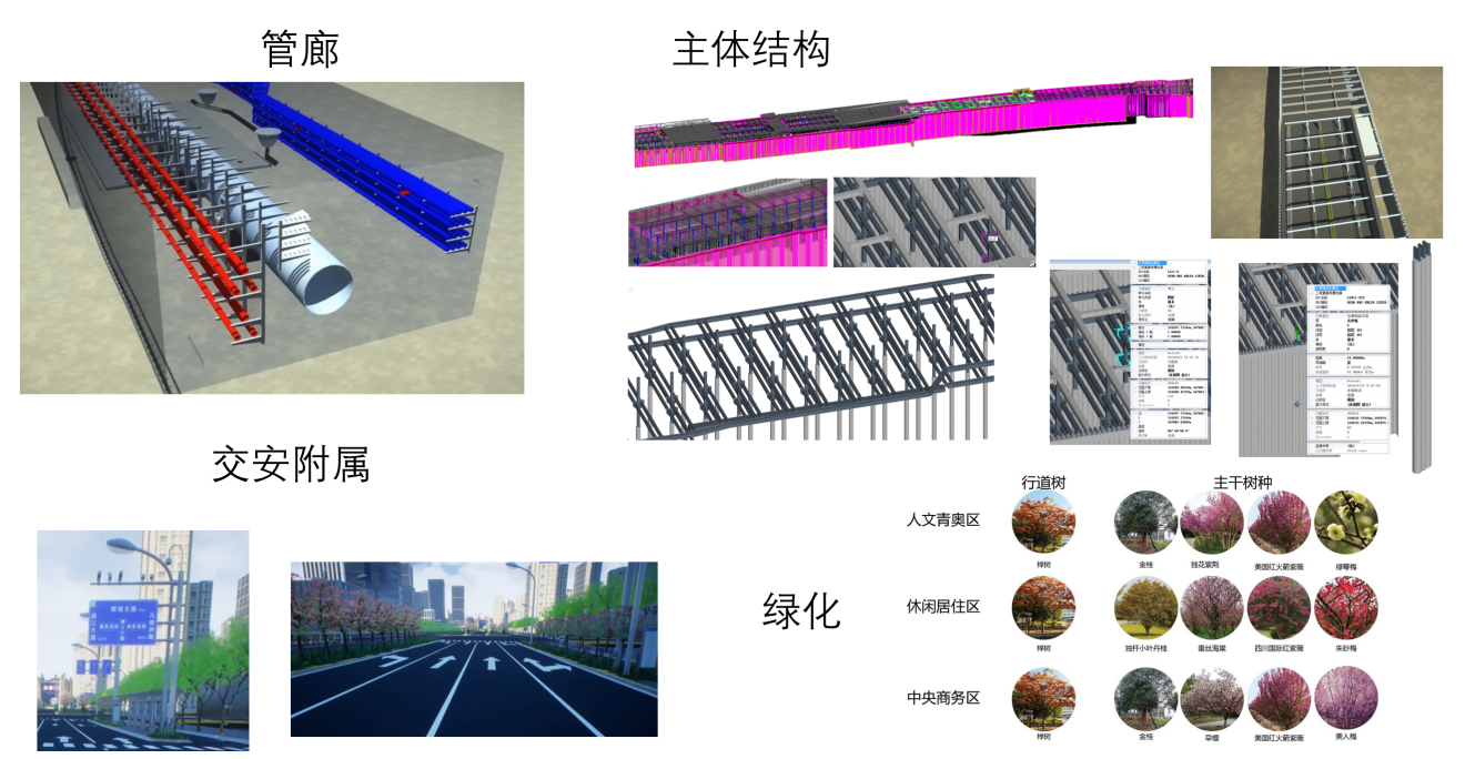 数据融合内容涵盖周边地块规划、已建建筑、市政道路、桥梁、涵洞、隧道、原状管线、设计管线、管廊、交安、绿化等城市主要部件。该技术实现“未建先见”,为项目实施决策提供真实场景,为精细化施工提供指导。