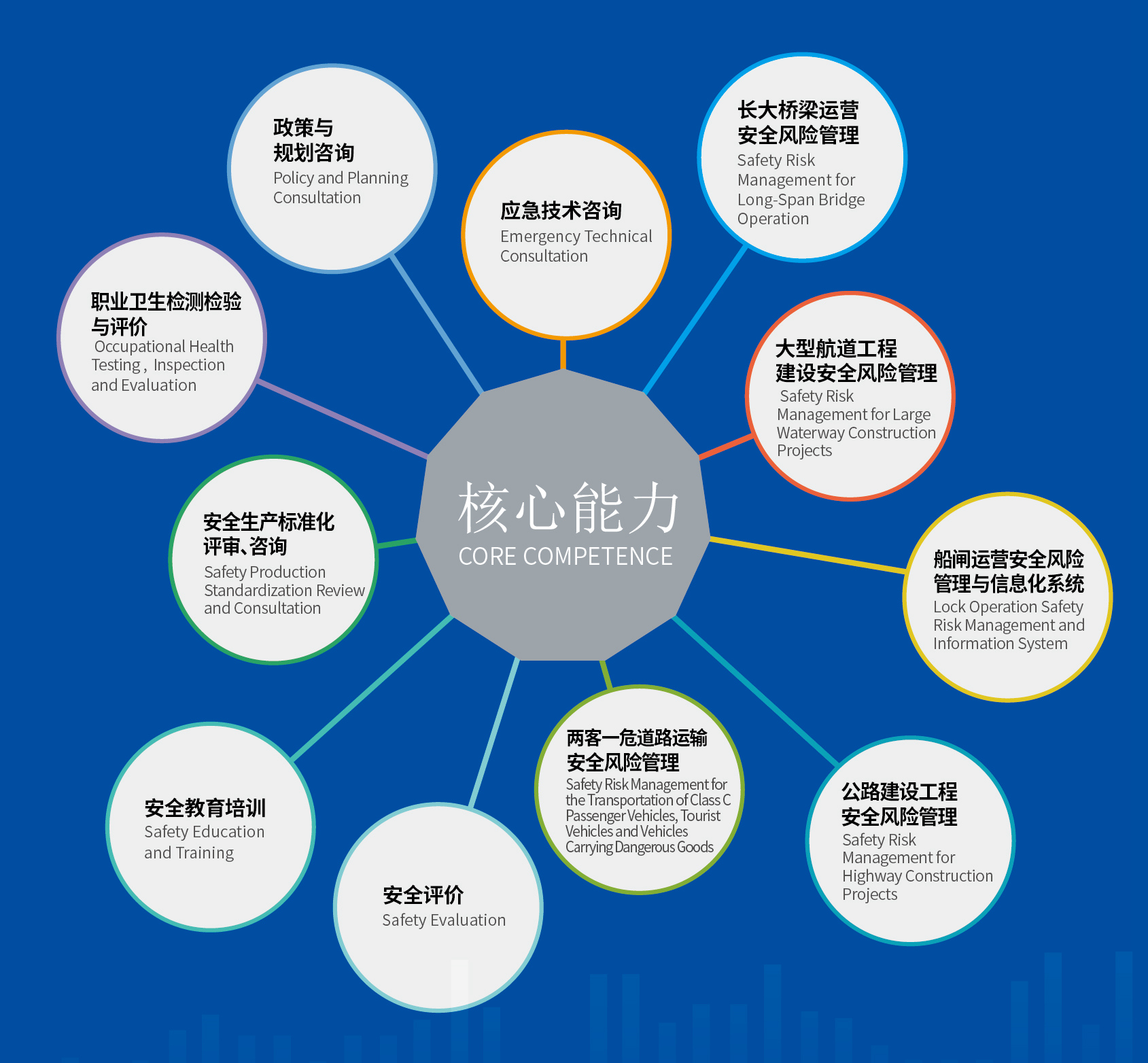 集团深耕交通行业数十载,在安全与应急技术研究领域实践经验丰富,理念先进、技术成熟,长期致力于交通运输安全政策咨询、安全科技技术支持、安全信息分析预测、安全应急技能培训、事故评估鉴定、企业安全标准化建设指导推进等工作,为交通运输安全保驾护航。