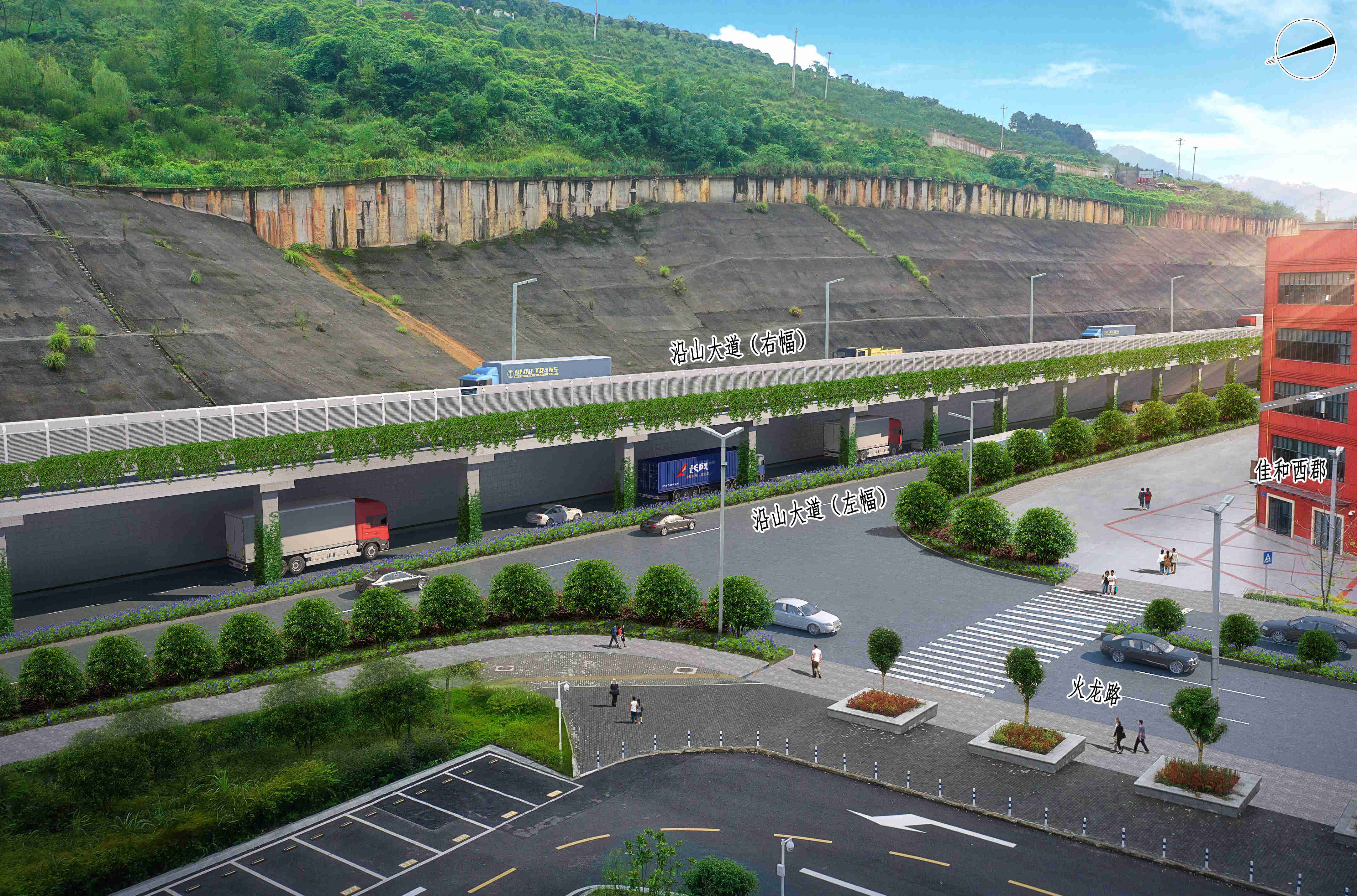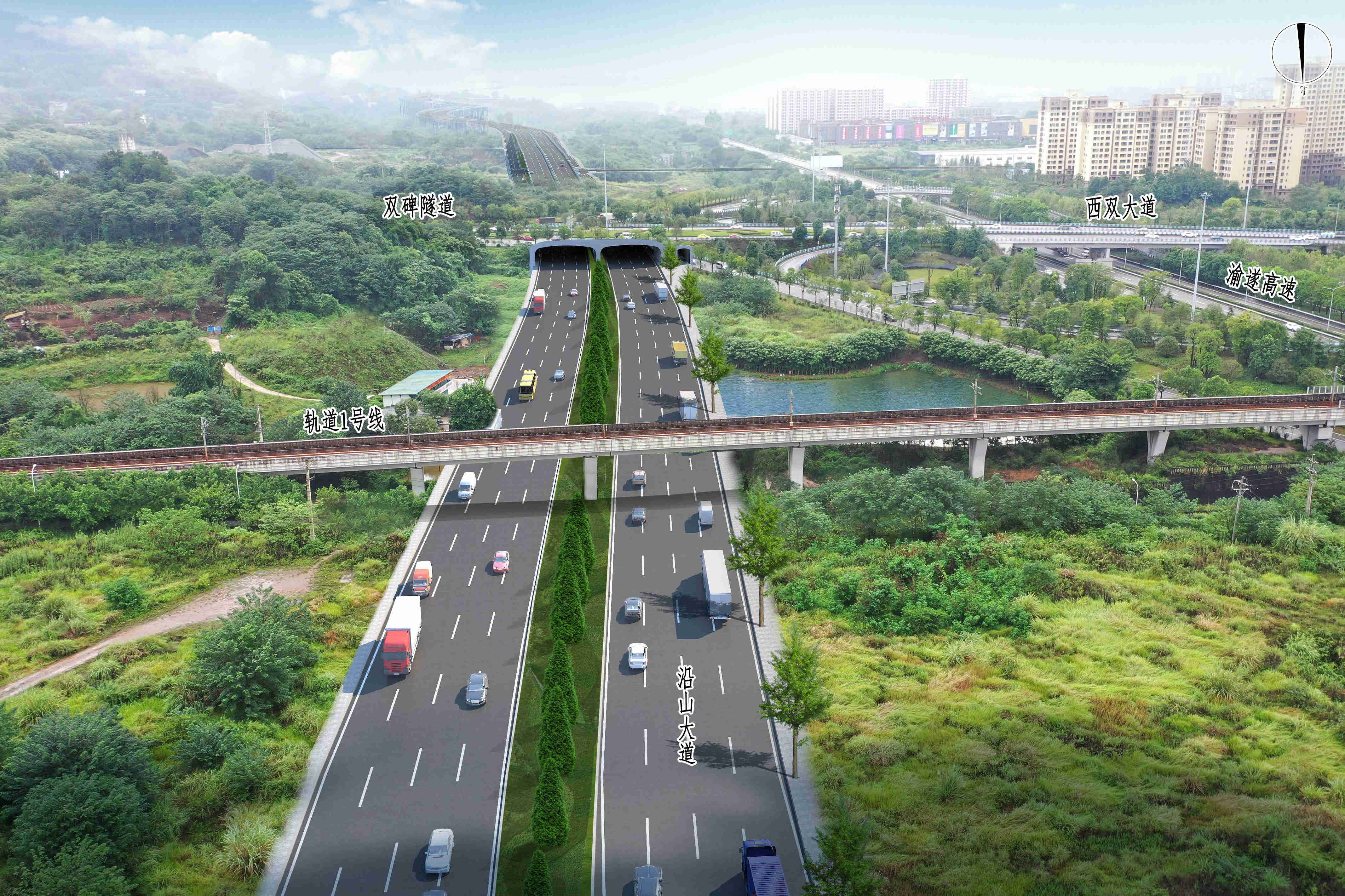 本项目位于重庆中梁山西侧,起于高新区与九龙坡交界处,止于西部物流园,沿线经过多个城镇,全长约25km,道路等级为城市主干路,设计时速60km/h,标准路幅宽度40m,双向8车道。多处与城市道路、隧道、铁路、轨道交叉,途径7个水库,最大挖方边坡高度达50m,全线包括桥梁、隧道、新建立交、枢纽互通立交14座,建安投资约58亿。作为主城区“井”字型货运通道之一,沿山大道建成后将分流内环及中心城区货运交通压力,为重庆建设“三宜”现代化高新区提供有力支撑。