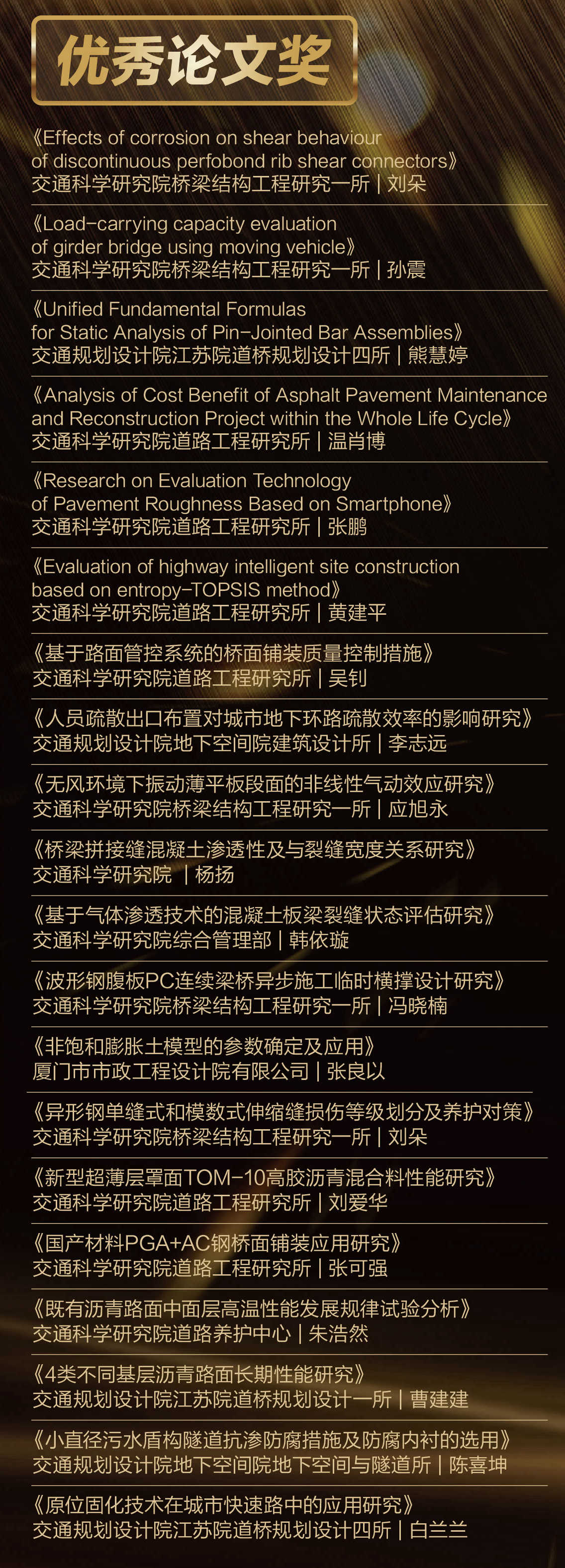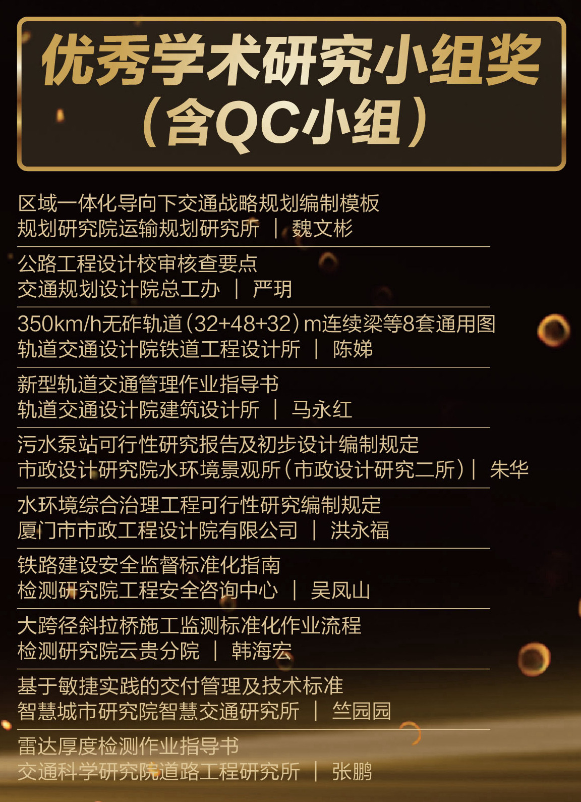 本篇章包括优秀论文奖(20篇)、优秀学术研究小组(含QC小组)奖(10组)、最佳创新奖(5名)、管理业绩改进进步奖(5名)。