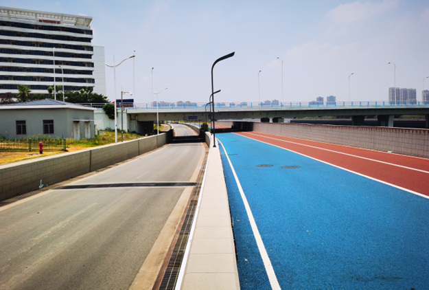 为降低赛事期间交通管制对公众出行的影响,同时保证非赛事期间赛道可作为日常训练道和公众休闲旅游道使用,马拉松赛道设计时应尽可能保证独立路权。因此,项目组通过桥梁跨越、通道下穿、赛道与转播道分离、赛道与训练道分离等方案实现赛道与周边市政路的交通分离,最大程度平衡赛道功能与城市交通间的关系。