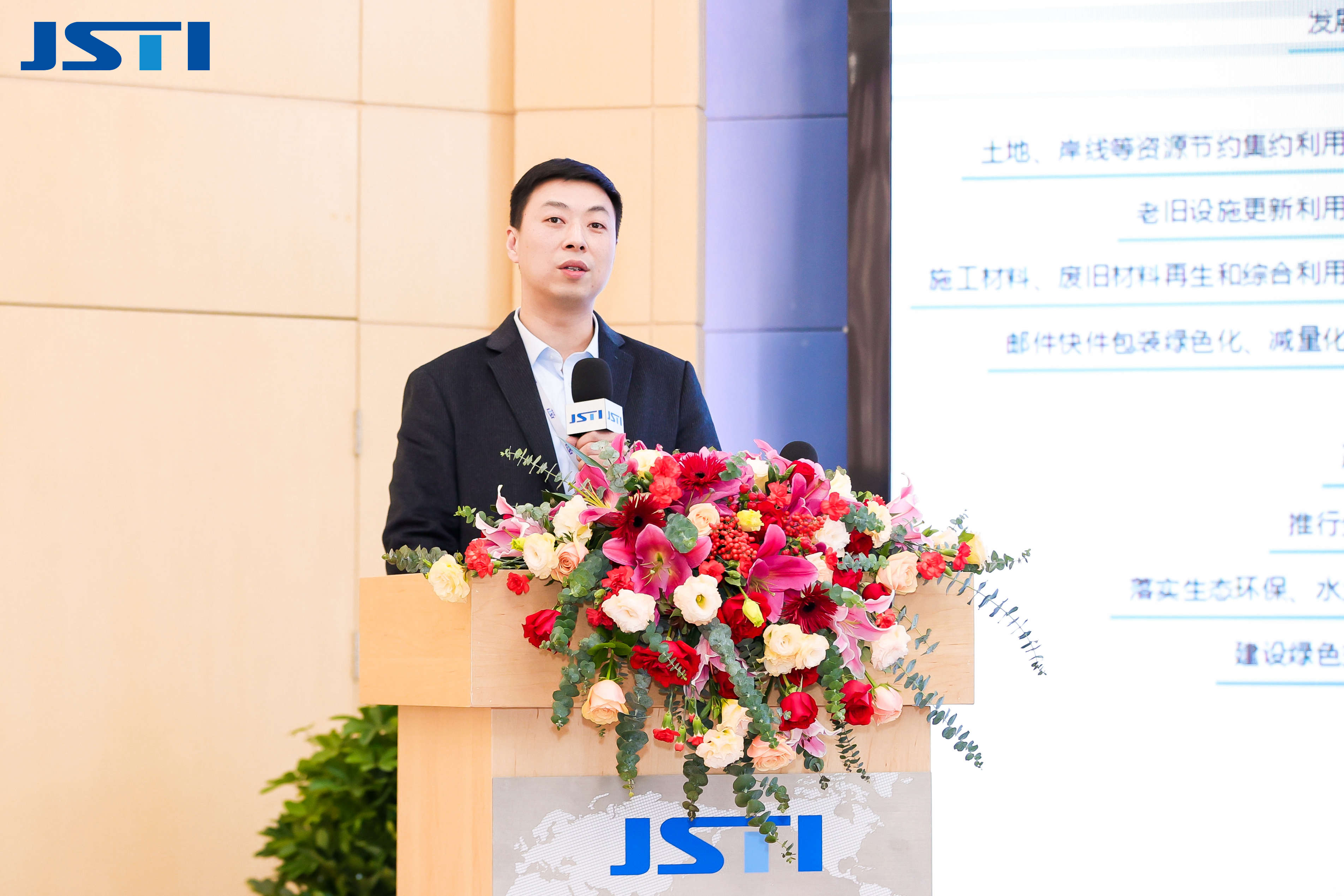 ▲ 江bevictor伟德能源科技发展有限公司总经理王勤发布《双碳背景下的绿色交通综合解决方案》