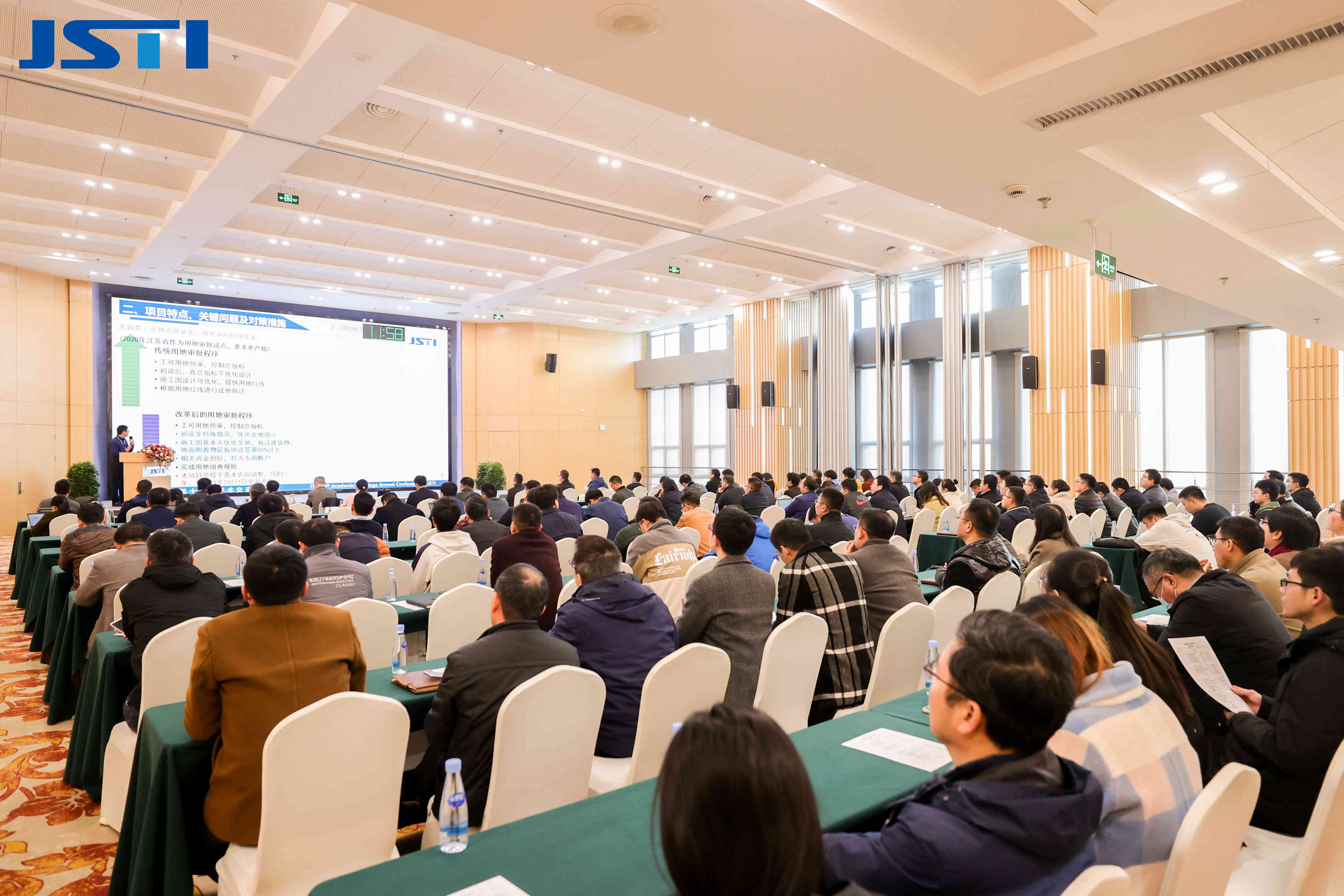 江苏省交通运输厅总工程师凌耀初、江苏省科学技术厅二级巡视员景茂、江苏省铁路办公室二级巡视员缪玉玲、江苏交通控股有限公司总工程师吴赞平为大会致辞,集团董事长李大鹏致欢迎辞,总裁朱晓宁主持会议。 中交公路规划设计院有限公司首席专家、全国工程勘察设计大师崔冰,江苏省交通运输厅科技处处长杨桂新,江苏省科学技术厅发展规划处副处长李杰,江苏高速公路联网营运管理有限公司总经理曹小峰,东南大学交通学院副院长顾兴宇,珠海市交通勘察设计院有限公司执行董事、总经理吴平平,bevictor伟德集团首席工程师王家强、朱绍玮、曹荣吉、张宇峰,首席规划师徐丽作主旨报告。南京市交通运输局副局长奚晖,东南大学交通学院院长陈峻,南京市公共工程建设中心副主任郭志明,宿迁市交通运输局总工程师宋学文及行业企业代表出席会议。