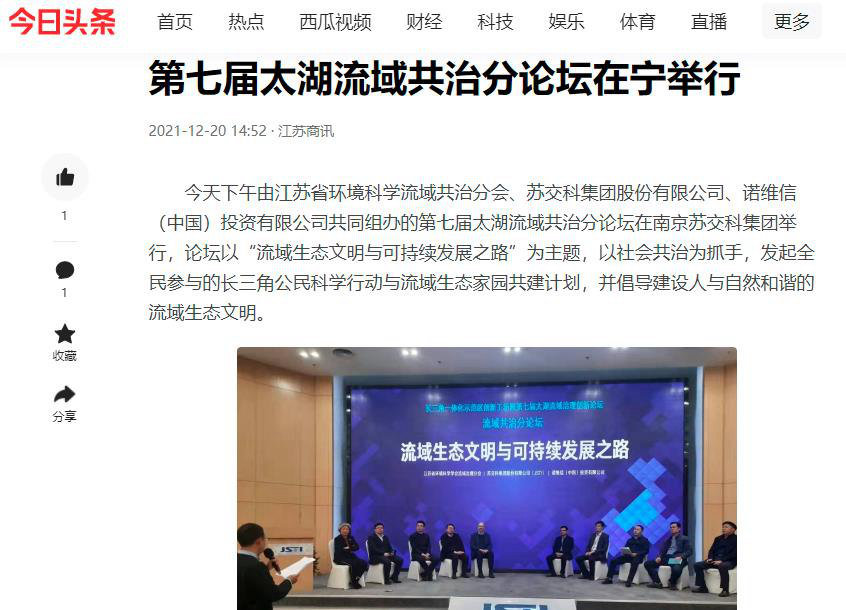 本次会议以“流域生态文明与可持续发展之路”为主题,旨在为长三角一体化区域和太湖流域“十四五”期间流域治理模式创新、高质量发展、流域生态平衡献策。来自中国水环境集团、长江生态环保集团、葛洲坝集团、江苏省环境科学研究院太湖中心、太湖设计研究院、南京大学、国浩律师事务所等单位的专家围绕“治理模式创新与生态治理技术研讨”“流域智慧决策管理”等主题作专题报告。会议期间,首批“流域生态家园共建伙伴”签约,“流域数字生态实验室战略合作协议”“太湖智慧流域管理战略合作协议”签署。