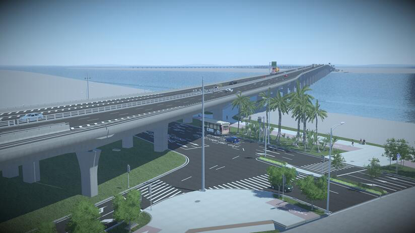 项目北起厦门市翔安区翔安南路,南至机场快速路,全长6.05公里,路幅宽50米,设有主线高架道路及地面层道路,双向六车道,为连续桥梁形式,包含跨海特大桥1.38公里,两端连接高架桥4.67公里,设计车速为80公里/小时。