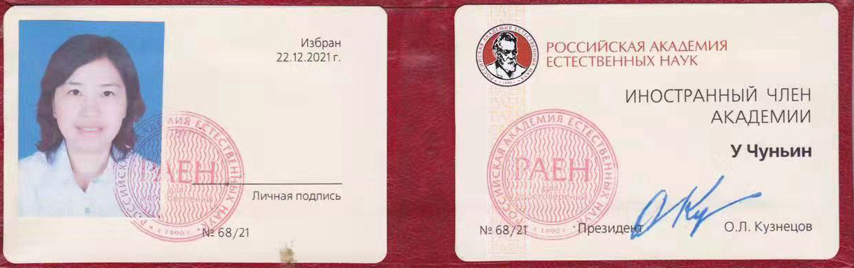 俄罗斯自然科学院成立于1990年,是俄罗斯三大科学机构之一(俄罗斯自然科学院,俄罗斯科学院,俄罗斯工程院),1995年获联合国正式认可,2002年获联合国非政府组织认定。俄罗斯自然科学院成员均为自然科学和人文科学领域取得重大成就的科学家和专家,具有重要学术影响力。现有18名诺贝尔奖获得者、270余名俄罗斯科学院院士、30余名俄罗斯国家医学科学院院士、20余名其它科学院院士以及多名俄罗斯科学家和外籍院士。外籍院士来自全球48个国家,包含中国多位两院院士、科学家及学者。吴春颖博士在“新型道路建养材料”方向持续作出杰出贡献,经院士推荐、形式审查、材料审核、学部选举、主席团审议等流程,俄罗斯自然科学院最终确定其当选为材料科学方向外籍院士。