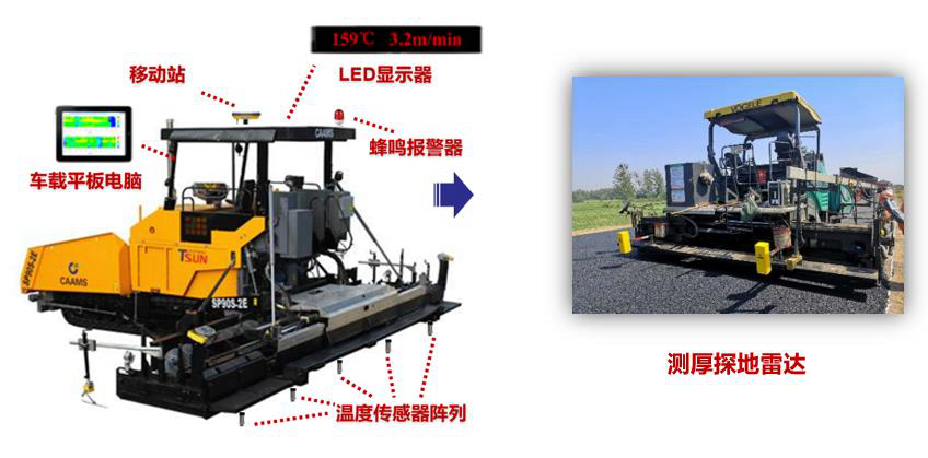 温度采集装置、摊铺厚度采集装置及定位装置工作性能稳定精准,温度测温精度为±2℃,摊铺厚度测量精度为±2mm,定位精度为平面±(10mm+10-6D),设备无故障间隔时间不小于1000小时。
