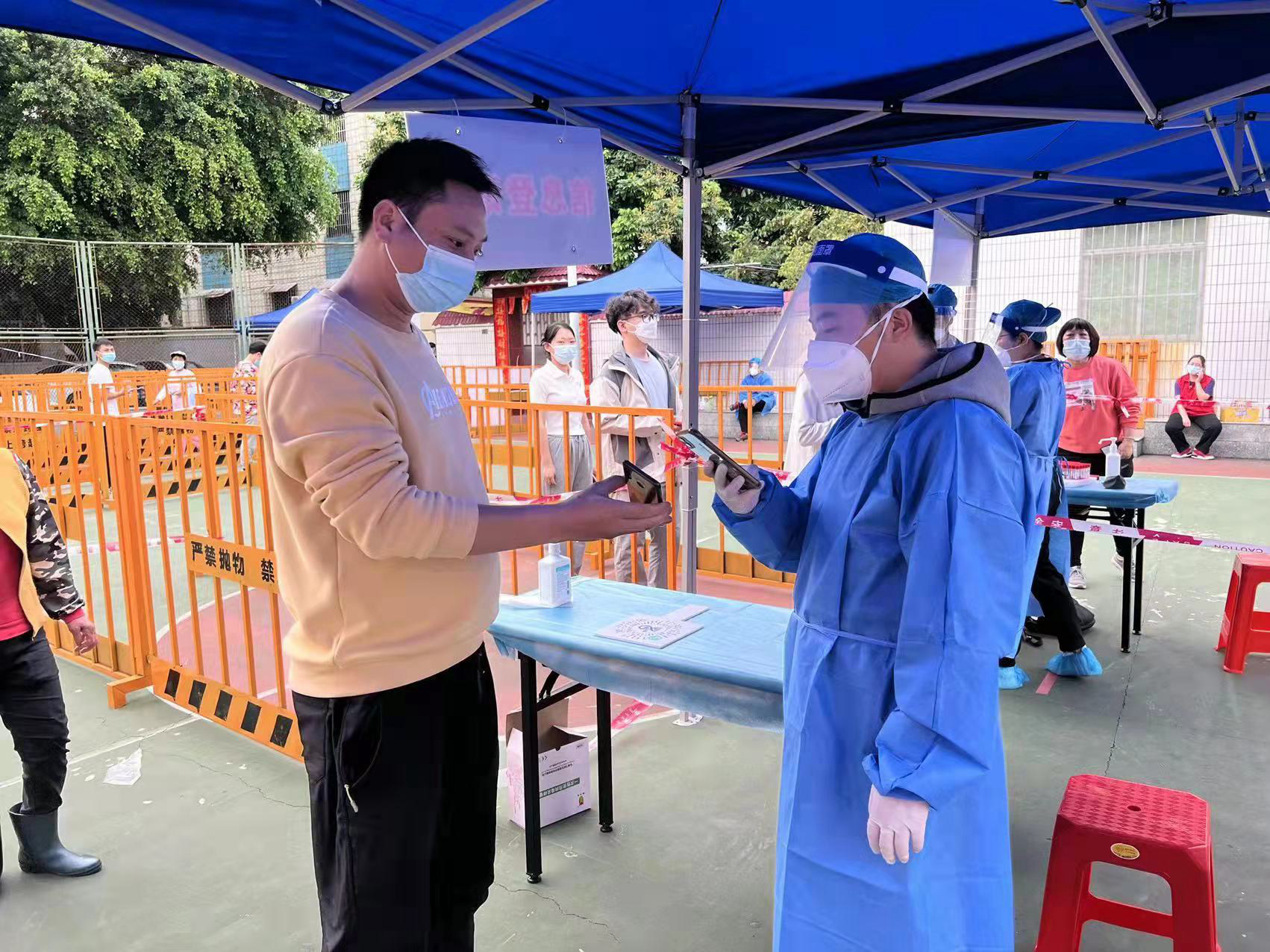 3月30日,“中山水利抗疫小分队”根据社区统一安排,分成两组前往核酸采样点。支援职工穿戴好防护服后接受岗前培训,迅速下沉到核酸采样现场,开展扫码测温、指引群众填写采样信息、分发采样瓶、后勤保障等工作,提供细致耐心的服务。多次参与防疫志愿者工作的党员鄢璞表示,“在疫情防控阻击战中,党员要像一面旗帜,当好‘疫’线的先锋军,非常有幸能参与到疫情防控志愿服务中,用实际行动为抗击疫情贡献一份力量。”