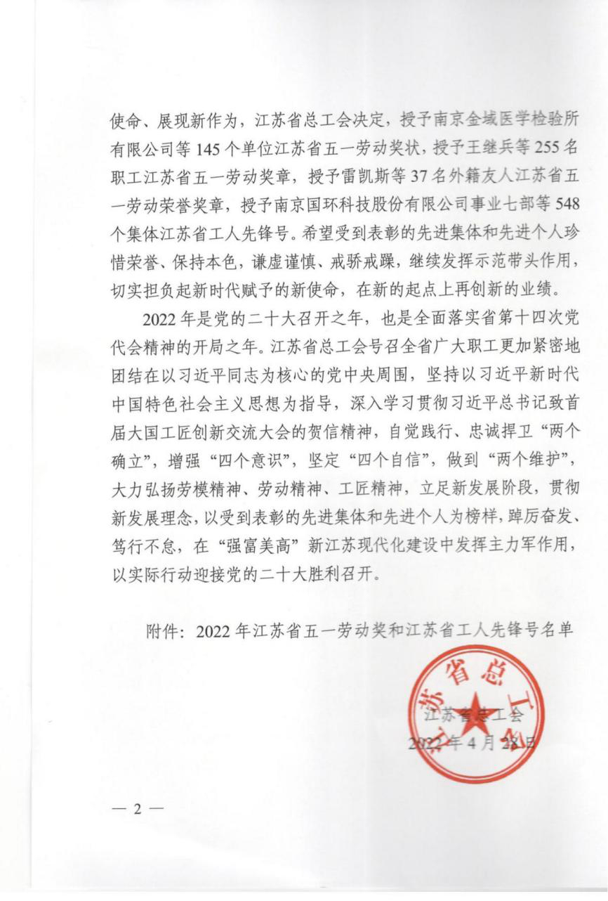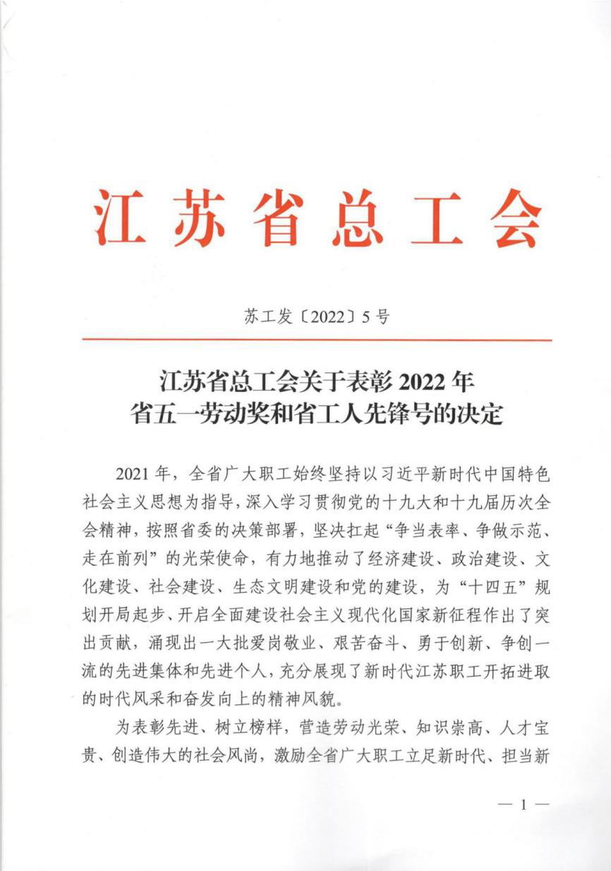 近日,江苏省总工会召开“五一”新闻发布会,会上公布2022年江苏省五一劳动奖状、奖章、工人先锋号评选表彰情况。bevictor伟德集团交通科学研究院道路工程研究所(道路养护中心)荣获“江苏省工人先锋号”称号。