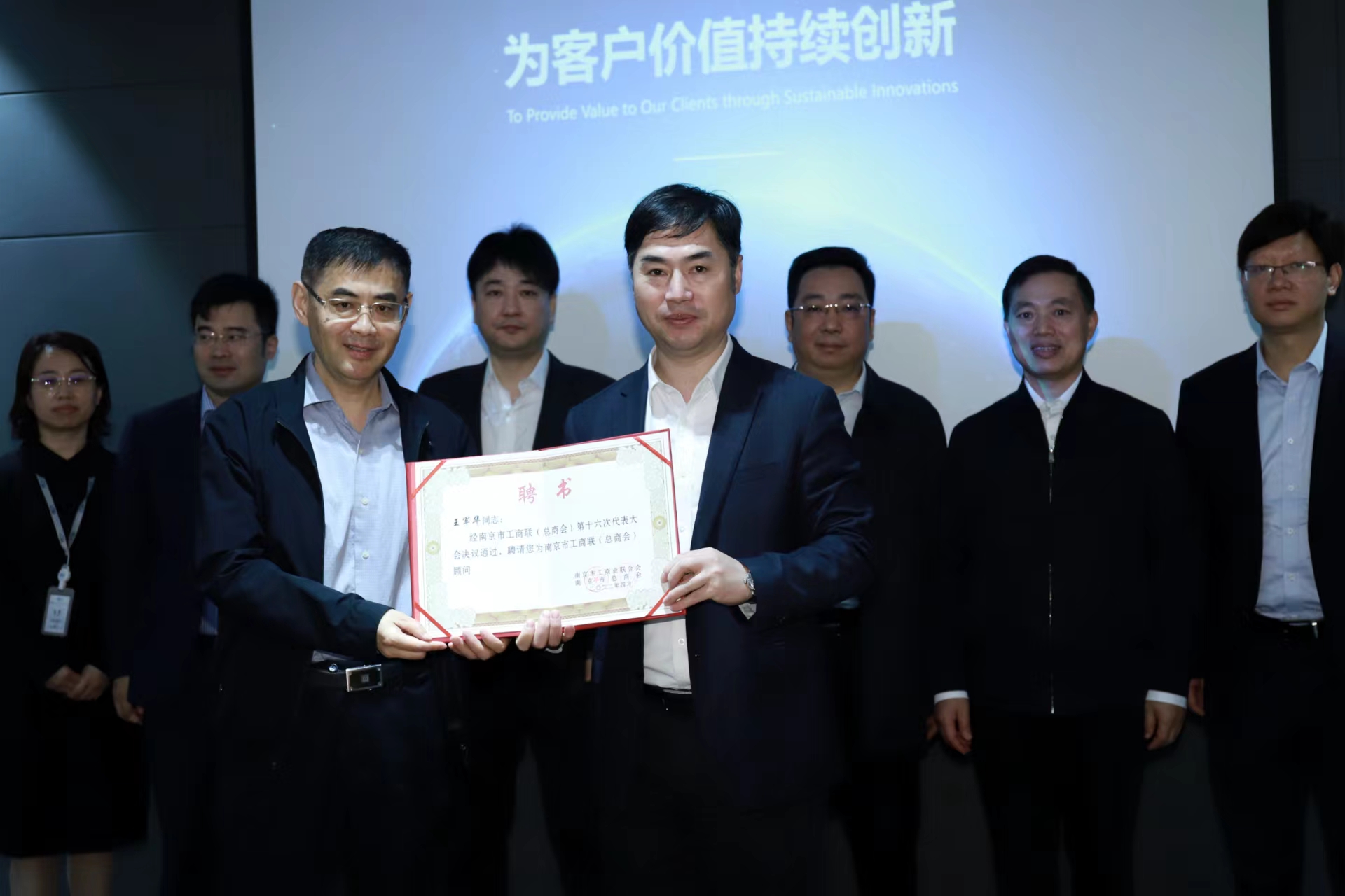 同时经南京市工商联(总商会)第十六次代表大会决议通过,特此聘请bevictor伟德集团副董事长王军华为南京市工商联(总商会)顾问并颁发聘书。