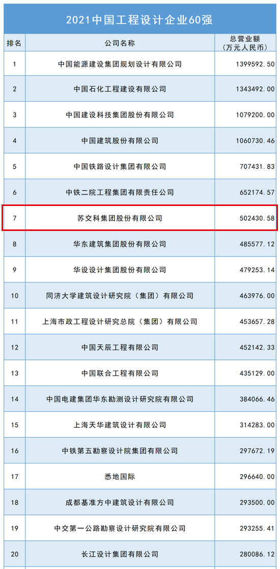 “2021中国工程设计企业60强”
