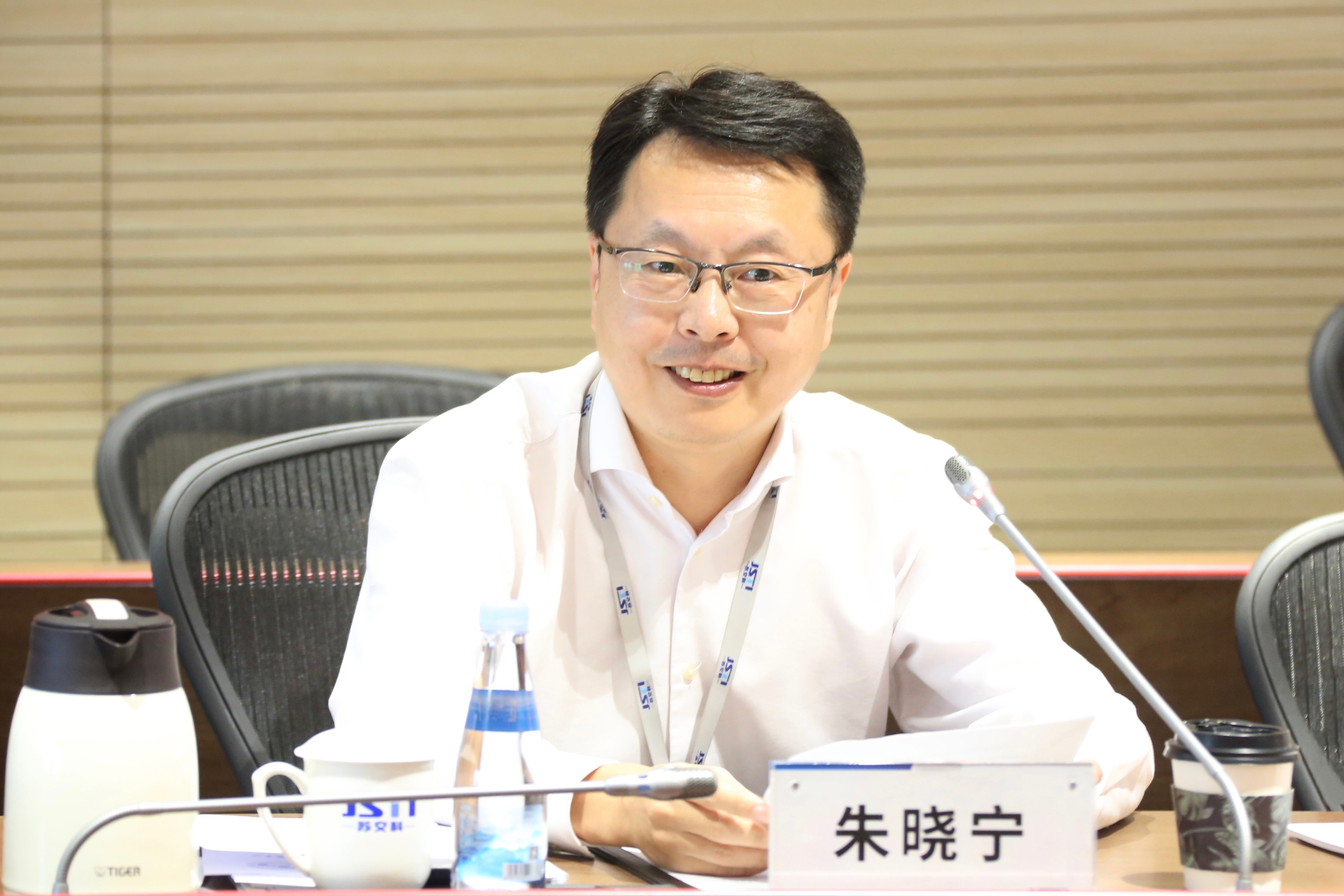 江苏省交通运输厅副厅长丁峰、江苏省发展和改革委员会创新和高技术发展处处长鄂有阳、江苏交通控股有限公司副总经理陈金东、江苏省交通运输厅科技处处长杨桂新、江苏省交通运输厅建设管理处处长徐斌、江苏省交通运输厅公路事业发展中心主任胡萌、江苏省交通工程建设局副局长周进等9位工程中心理事会成员现场参会。集团总裁朱晓宁出席会议并致欢迎辞,交通科学研究院院长杨扬、首席工程师(道路材料)曹荣吉、交通科学研究院副院长李豪等相关领导参会。