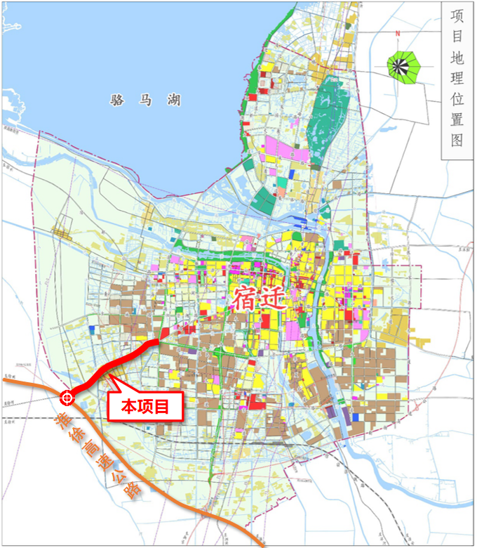 徐淮路作为宿迁市东西向主干通道,与城市西出入口互通以及325省道衔接,串联了“三区”中的生活配套区、创意研发区、商贸物流区等区域。本项目的建设进一步完善了区域内主干路网结构,提升了道路通行能力,并对促进沿线经济发展具有重要意义。
