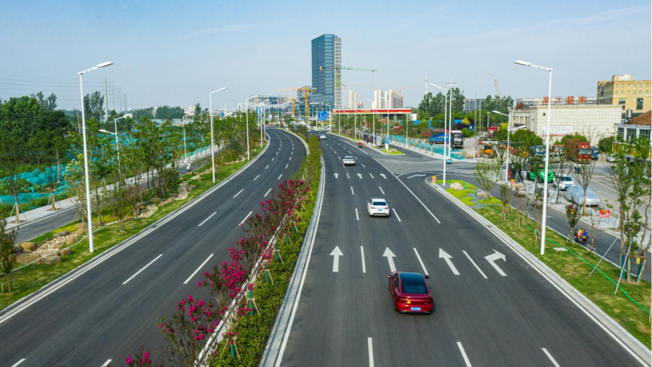 交科设计作为该项目主体设计单位,积极践行生态环保、和谐发展的理念,采用灵活的断面形式和多变的管线方案,将交通路、产业路、景观路充分融合,同时运用更加智慧便民的人行开口、人行天桥、绿波设计,着力打造高颜值城市西门户景观大道。