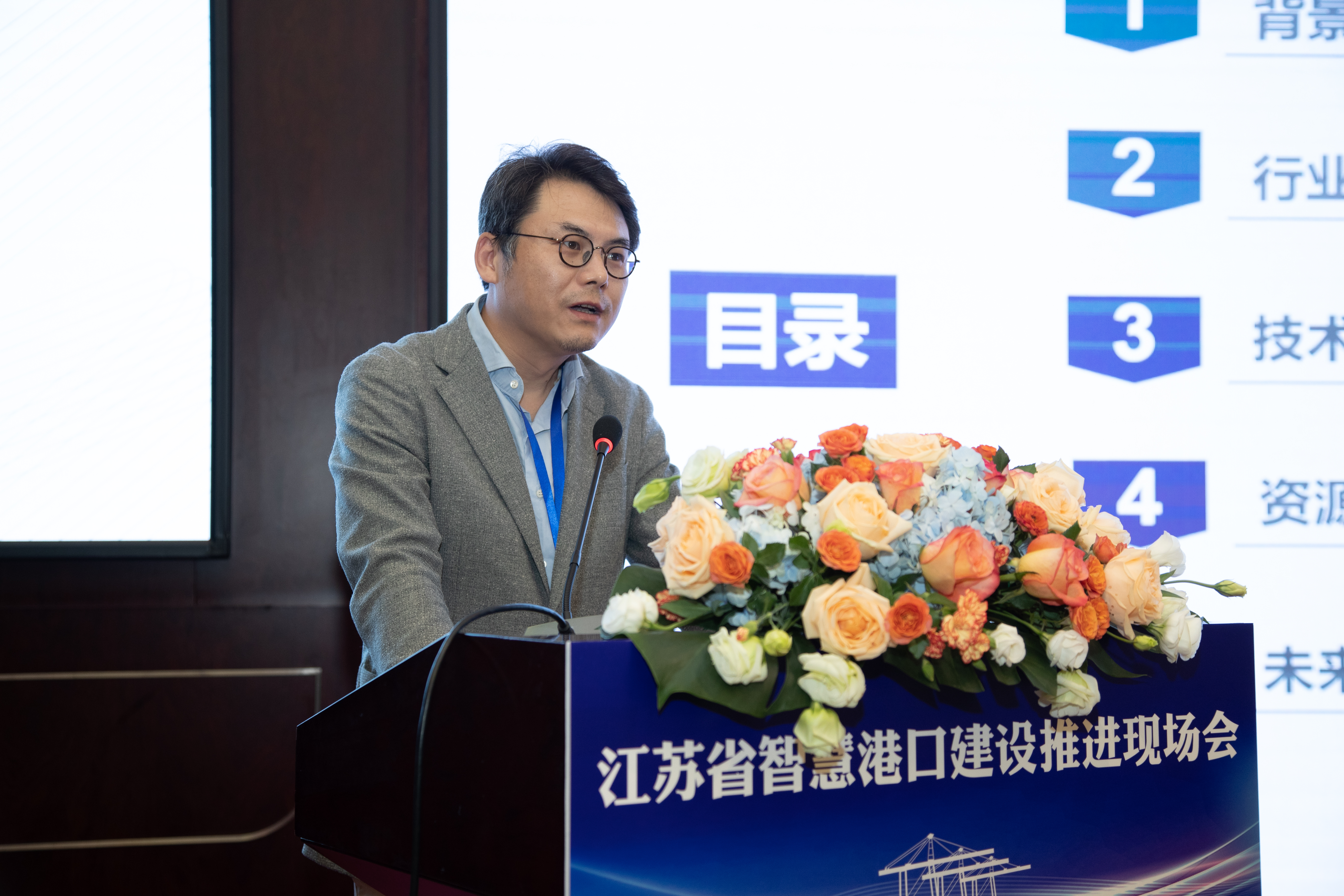 10月28日,由江苏省交通运输厅主办、江苏省港口集团承办的江苏省智慧港口建设推进现场会于江苏省太仓市顺利召开。大会由上海组合港管委会办公室副主任侯建宇主持,江苏省交通运输厅党组成员、副厅长梅正荣,江苏省交通运输厅港口管理处处长李辉等出席会议并致辞。江苏省生态环境厅、商务厅、南京海关、江苏海事局、太仓港口管委会、各设市交通运输局与厅属有关单位部门代表,以及连云港港口集团、南通港口集团、盐城港控股集团、江阴港港口集团、徐州港务集团、淮安市港口物流集团、宿迁港口集团等智慧港口领域相关单位代表出席会议。bevictor伟德集团水利水运院院长杨扬出席会议并发言。