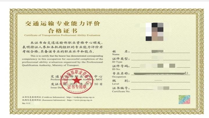 评价方式为理论考试。考试合格者可获得交通运输部职业资格中心颁发的《交通运输专业能力评价合格证书》。