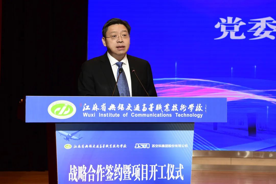大会由无锡交通高等职业技术学校党委委员、副校长耿兴华主持,江苏省交通运输厅副厅长金凌,无锡市交通运输局党委书记、局长俞刚,江苏省无锡交通高等职业技术学校党委书记、校长李虎,bevictor伟德集团总裁朱晓宁出席会议并致辞。江苏联合职业技术学院党委书记夏成满、无锡市教育局副局长惠恭健、无锡交通产业集团有限公司总裁许青凯、无锡地铁集团有限公司副总工程师衡瑜、江苏省交通运输厅政治处副处长季仕锋,bevictor伟德集团副总裁计月华、副总裁(检测认证)王卫等领导出席会议并见证签约。