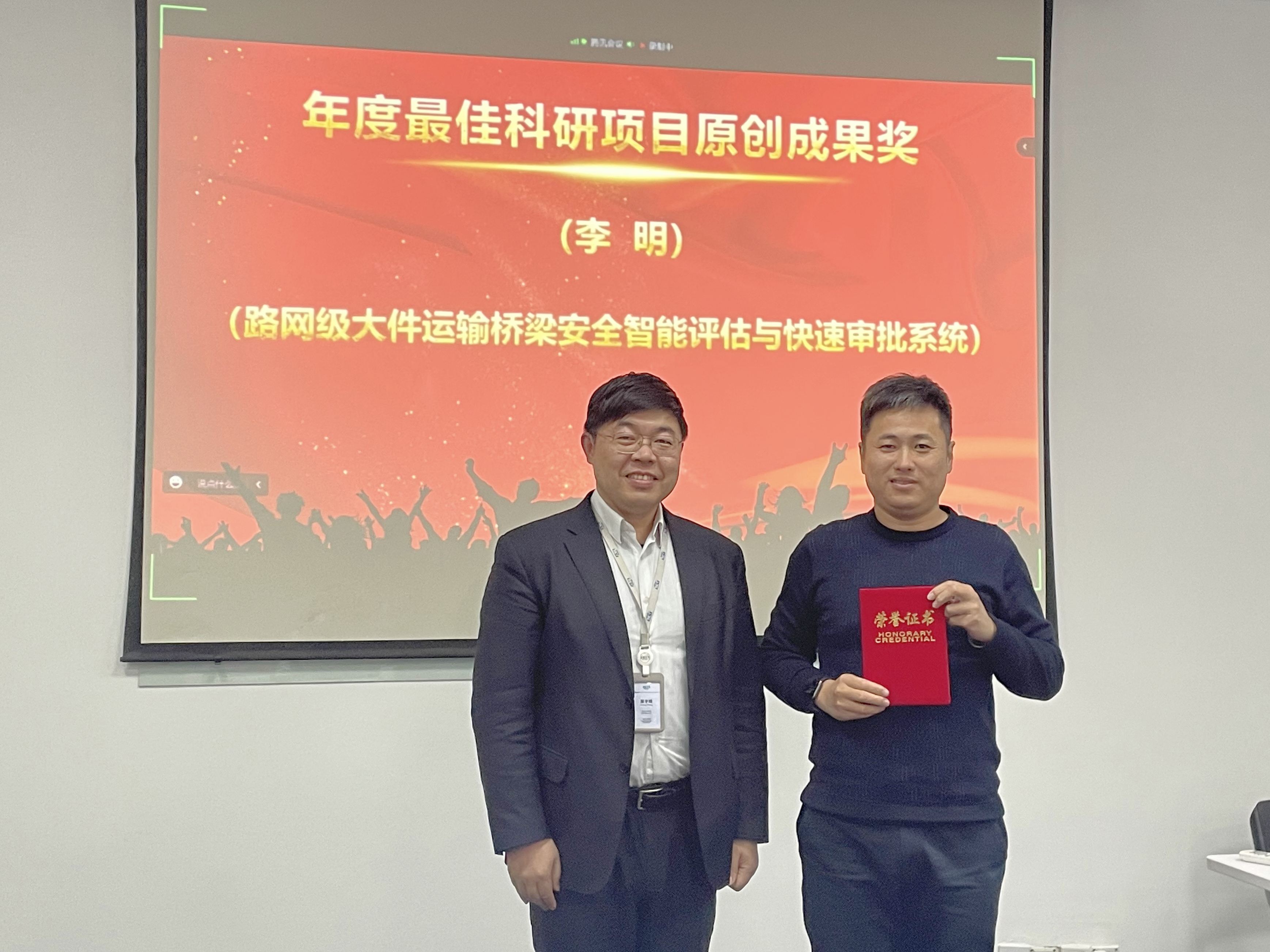 • 李明《路网级大件运输桥梁安全智能评估与快速审批系统》获得年度最佳科研项目原创成果奖
