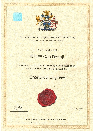工程中心主任曹荣吉研究员通过国际工程师资质认证,获颁英国特许工程师证书。