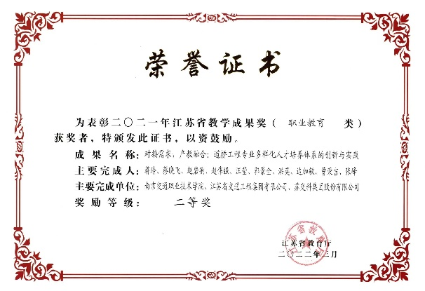工程中心主任曹荣吉研究员获江苏省教育成果奖(职业教育类)二等奖。