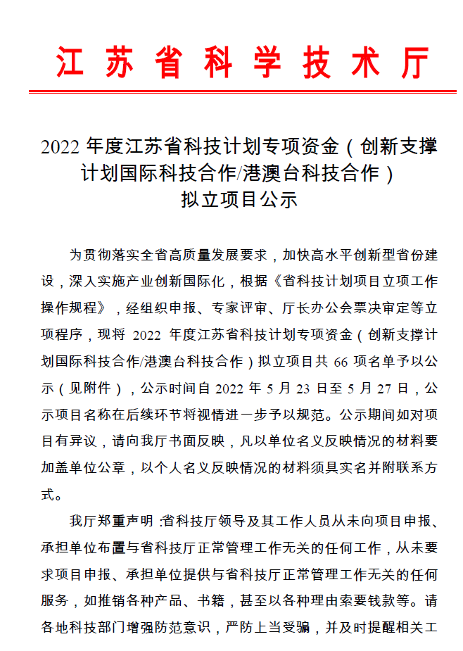 “基于最佳效益的道路全寿命周期养护关键技术与系统开发研究”获批江苏省科学技术厅2022年度江苏省科技计划专项资金(创新支撑计划国际科技合作/港澳台科技合作)项目。