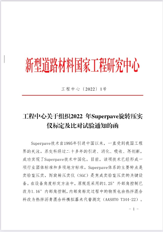 组织了2022年Superpave旋转压实仪标定及比对试验报名工作。