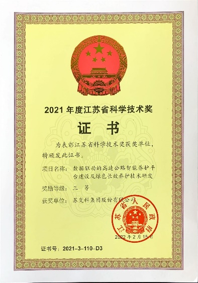 “数据驱动的高速公路智能养护平台建设及绿色长效养护技术研发”、“路用集料性能提升与生产优化关键技术及工程应用”及“高速公路路面结构长期保存技术及智能养护”等12个项目获江苏省科学技术三等奖、中国公路建设行业协会科学技术奖特等奖及江苏省综合交通运输学会科学技术奖特等奖等省部级奖项。