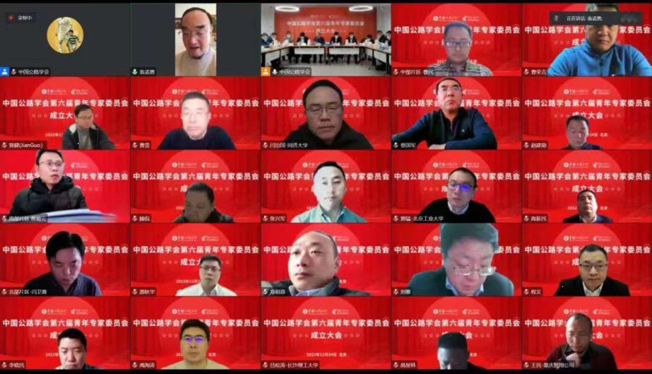 中国公路学会第六届青年专家委员会成立大会隆重召开。工程中心曹荣吉主任、韦武举副主任作为第六届青年专家委员会委员线上参会。