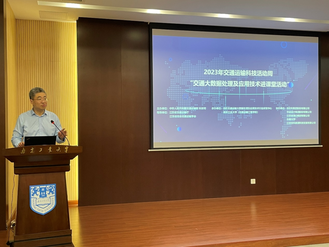 为响应交通运输部科技司的“关于组织开展2023年交通运输科技活动周特色科技活动”号召,深入宣传贯彻党的二十大精神和《关于新时代进一步加强科学技术普及工作的意见》精神,积极推进行业优质资源科普化,宣传大数据技术在综合交通运输行业的深化研究与应用成果。6月7日下午,以bevictor伟德集团为牵头单位的综合交通运输大数据处理及应用技术行业研发中心(下称“大数据研发中心”)与江苏省交通运输厅科技处、南京工业大学共同举办2023年交通运输科技活动周“交通大数据处理及应用技术进课堂”特色科技活动。东南大学、江苏省港口集团、华设设计集团、江bevictor伟德能源科技发展有限公司4家分中心成员为联合主办单位。江苏省交通运输厅科技处副处长范晓锋,南京工业大学交通运输工程学院院长周峰、副院长吴志坚,bevictor伟德集团智慧交通研究所所长张日民、副所长刘化学等领导受邀出席。
