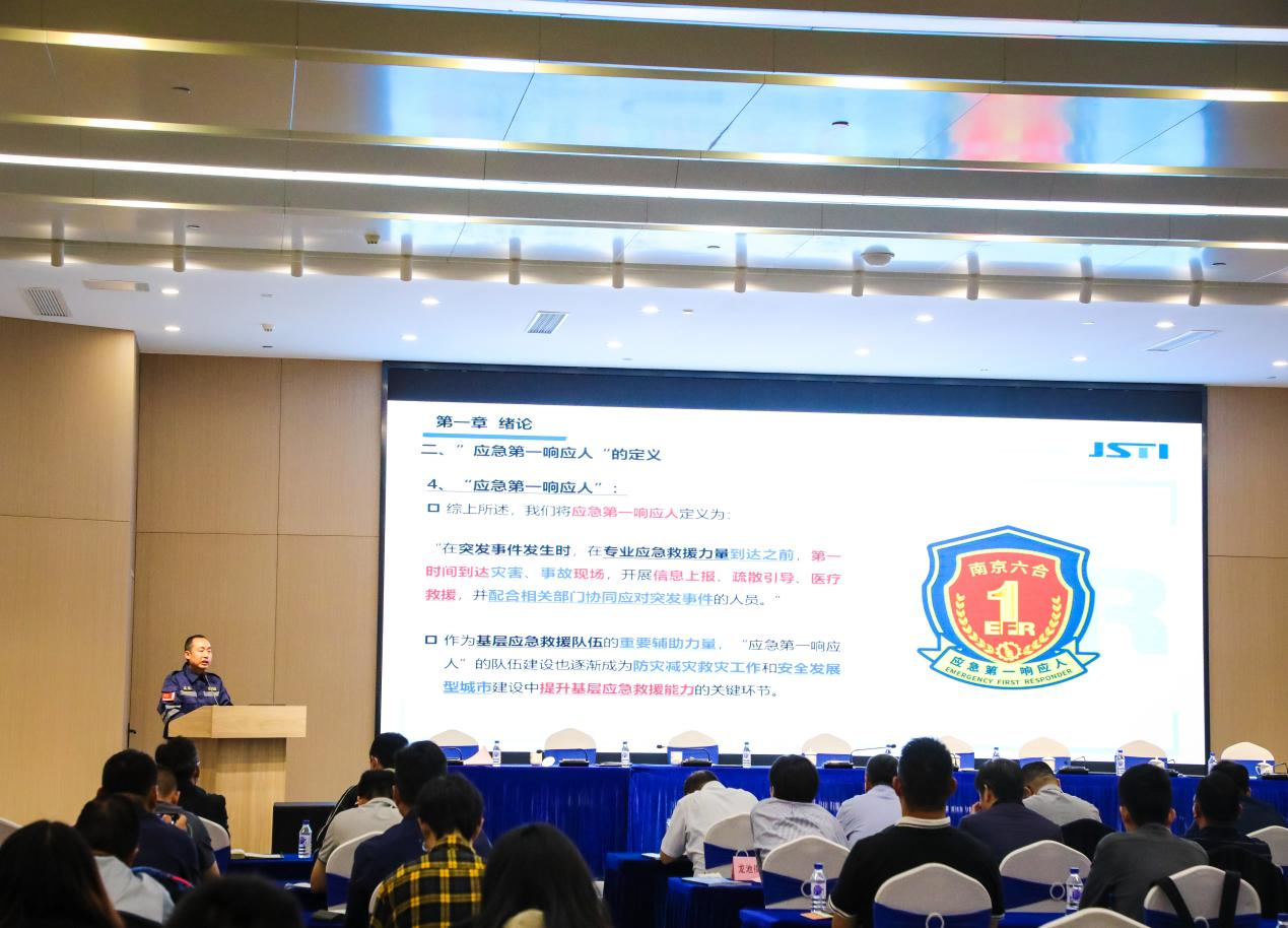 黄海明总经理为与会领导及参训学员介绍了“应急第一响应人”的培训课题体系。为保证高质高量的完成六合区“应急第一响应人”培训,省城安院将充分发挥资源优势,认真组织培训与考核工作,通过系统科学的课程设置和实操训练,让学员们获得系统的“应急第一响应人”知识体系、全面的提升应急救援技能,丰富应急处置的实践经验,在突发事件第一时间快速有效响应、第一时间及时处置,有效减少灾害事故造成的人员伤亡和财产损失,真正构建起坚实的公共安全社会防线。