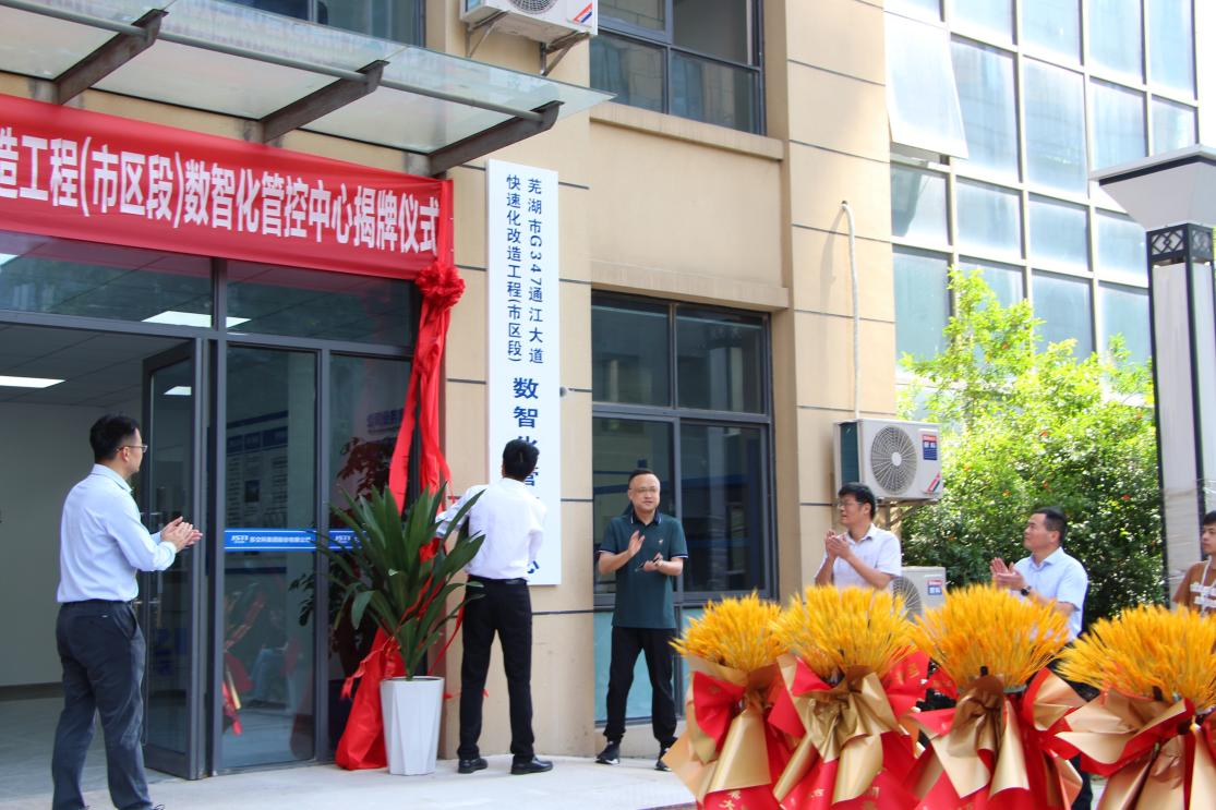 近日,“芜湖市G347通江大道快速化改造工程项目数智化管控中心”揭牌仪式在安徽省芜湖市顺利举行,活动邀请了芜湖市公路管理服务中心党委书记兼主任许带兵、党委委员张月辉、党委委员王斌,芜湖市交通运输综合行政执法支队副大队长黄磊、芜湖市区江南公路工程建设管理办公室主任左文武、芜湖市区江北公路工程建设管理办公室主任尹飞、副主任施家旺等领导专家参会。集团副总裁(桥梁业务)徐剑及相关项目负责人出席揭牌仪式。
