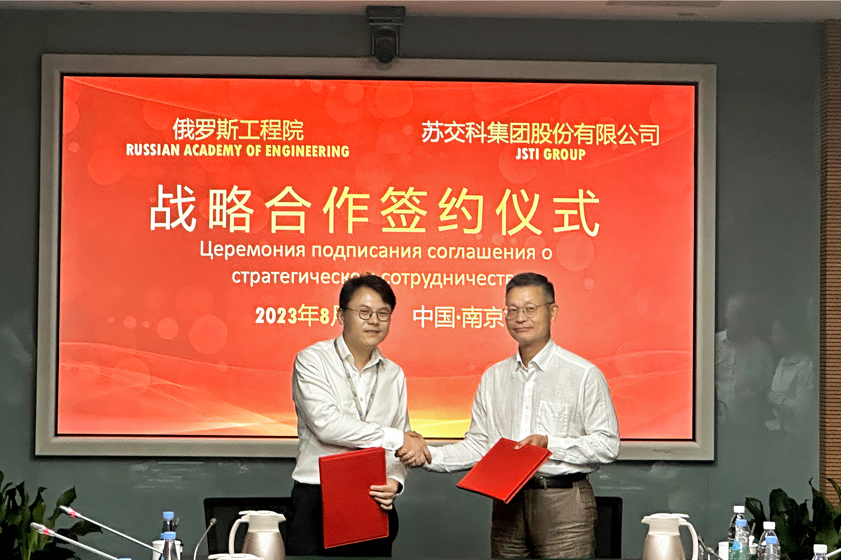 8月17日,俄罗斯工程院副院长Тян Валерий Анатольевич (姜.瓦列里.阿纳托利耶维奇)一行莅临集团来访交流。江苏省综合交通运输学会副理事长游庆仲、江苏高速公路工程养护技术有限公司总经理李捷、东南大学交通学院副院长马涛、徐工道路机械事业部副总经理高亮等相关领导出席会议。集团董事长李大鹏、交通科学研究院院长杨扬、首席工程师(道路材料)曹荣吉、交通科学研究院道路专业总工程师吴春颖及相关部门负责人见证签约并参与座谈交流。