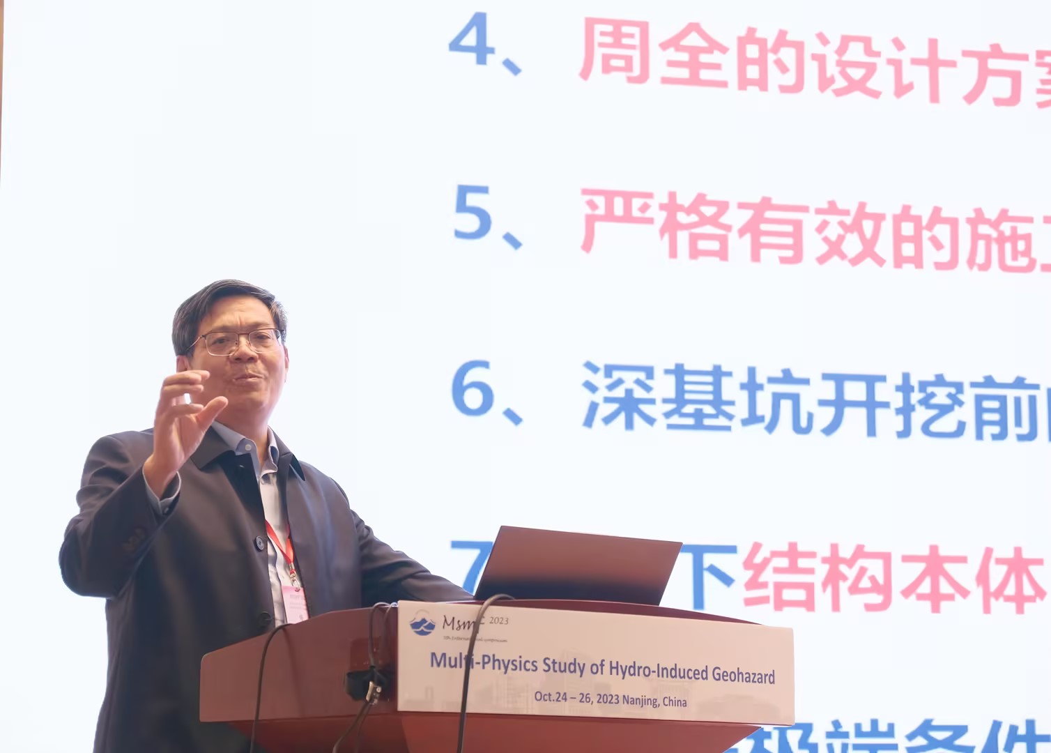 集团城轨院地下空间所总工程师张忠宇作《临江深基坑地下水控制设计关键技术 Key Technology of Groundwater Control Design for Deep Excavation close to River》主题演讲