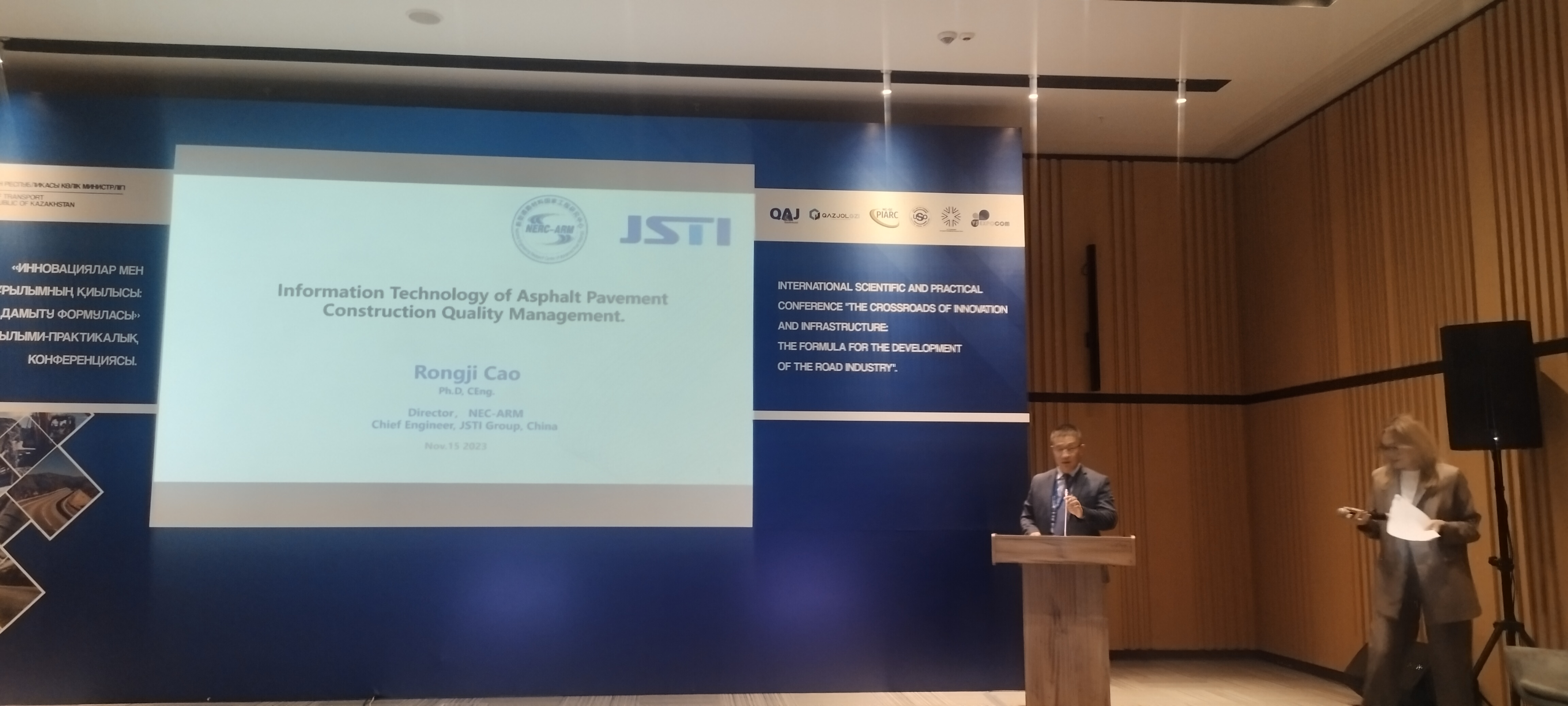 11月15日,第十九届哈萨克斯坦交通展会Kaztraffic 2023在阿斯塔纳国际会展中心盛大开幕。本次展会由哈萨克斯坦交通部举办,哈萨克斯坦公路研究院承办,来自哈萨克斯坦、俄罗斯、中国、德国、美国、土耳其等国家的100多家单位现场参会。哈萨克斯坦交通部副部长Ablaliev S.A.开幕式致辞,道路委员会主席T.T. Abdulin、执行主席Gabdullina A.M.出席大会。国际道路协会PIARC常务秘书长Patrick Mallejacq介绍了协会情况和近期工作计划。