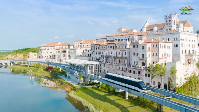 国内首个旅游度假区智慧轨道交通---采用2个智慧游客集散中心+2个智慧停车场+1个智慧轨道交通一体化规划+设计模式。景区内外衔接交通设施供给,对外提升换乘效率、扩大游客吸引范围,对内构建旅游轨道交通系统,服务景区内主要客流走廊。