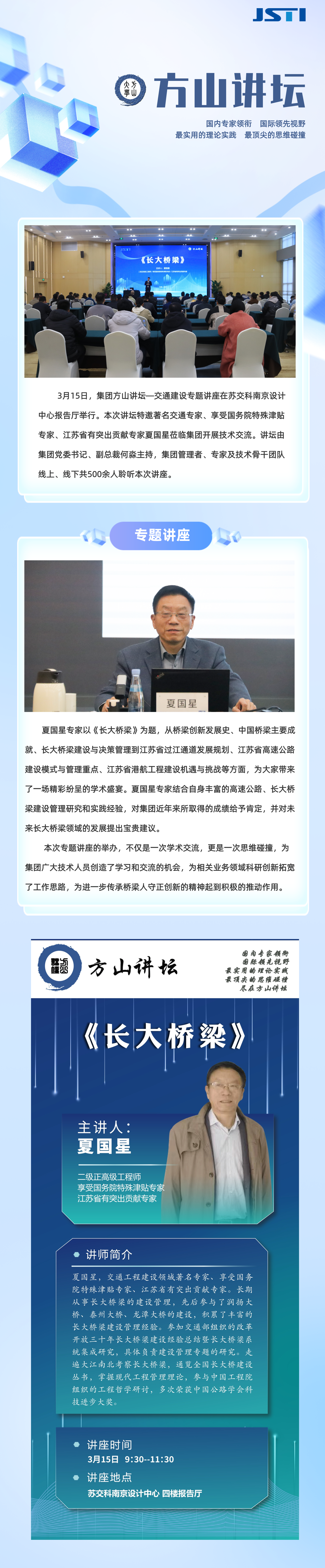 方山讲坛 | 著名交通专家夏国星《长大桥梁》专题讲座