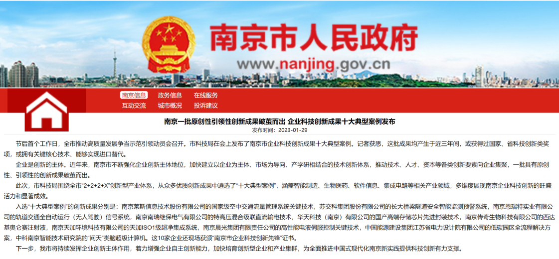 《长大桥梁隧道安全智能监测预警系统研发及产业化》重大科技成果成功入选“南京市企业伟德国际1946成果十大典型案例”