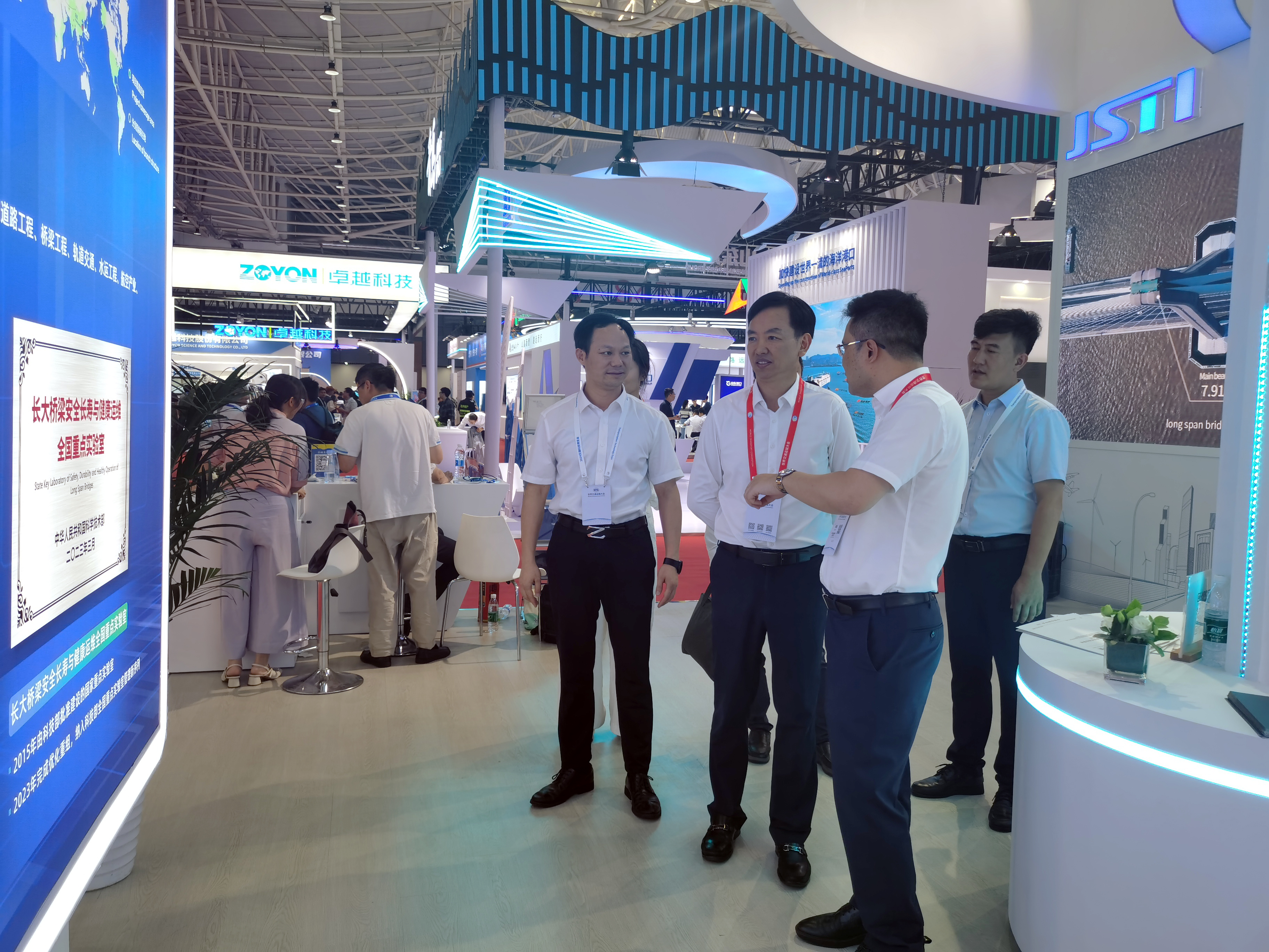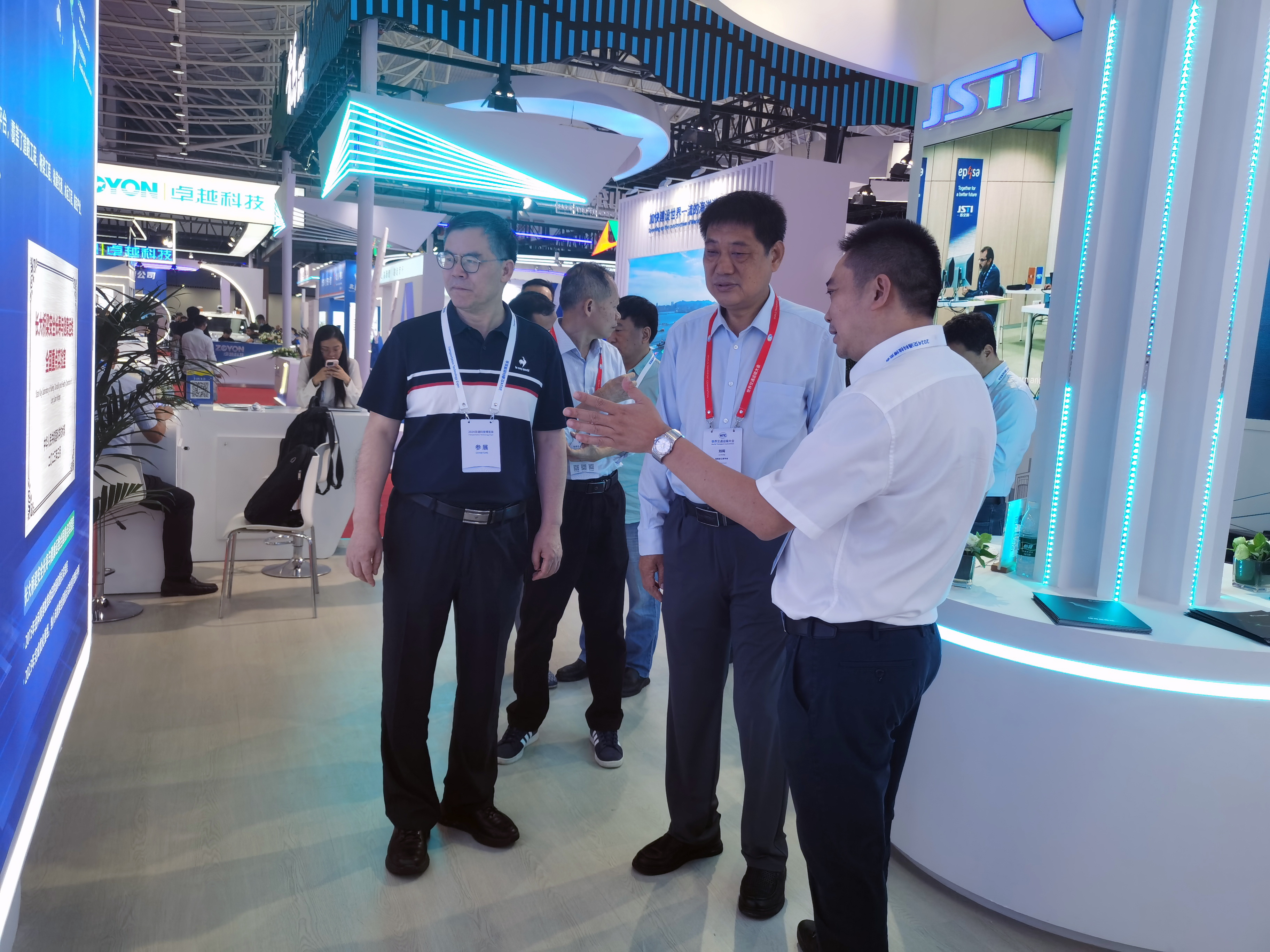 中国交通建设集团有限公司党委常委、副总经理、中交产业投资控股有限公司董事长裴岷山,中国公路学会副秘书长(主持工作)兼世界交通运输大会执委会运行中心主任王大鹏,中国公路学会副理事长、江苏省综合交通运输学会副理事长、公路分会会长、江苏省交通运输厅原厅长游庆仲,江苏省综合交通运输学会公路分会副会长姜竹生,江苏省交通工程建设局副局长周进,原海南交通厅一级巡视员、海南公路学会理事长刘闯,海南省交通工程建设局局长李邦武,浙江省交通运输厅二级巡视员张文彪,越秀交通党委书记、总经理何柏青,同济大学中国交通研究院院长李兴华、广州航海学院副校长张劲文等领导专家参观了bevictor伟德集团展位,对本次展出的“硬核新技术”予以充分肯定。
