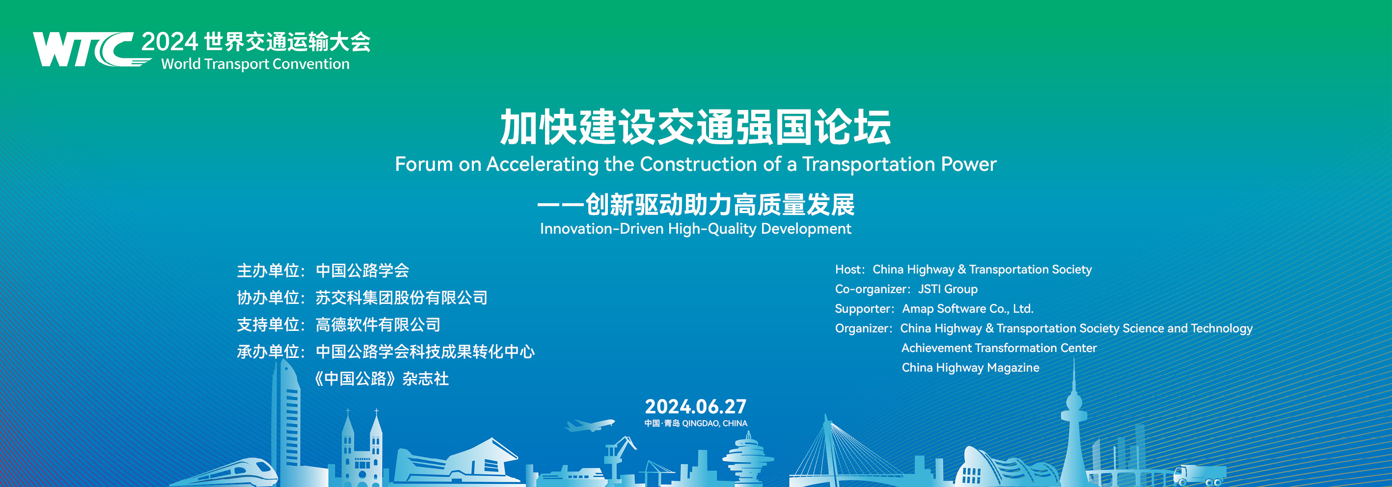 6月25日-29日,由中国公路学会等6家单位共同主办的第八届(2024)世界交通运输大会(World Transport Convention,简称WTC)在山东青岛盛大开幕。本次大会以“变革中的新交通”为主题,涵盖学术交流、技术研讨、国际合作、科技竞赛、成果发布等内容,充分展示了近年来世界各国在可持续交通、绿色交通、智慧交通、数字交通、综合交通、智能建造、交通与能源融合发展等领域的创新科技成果与发展模式。