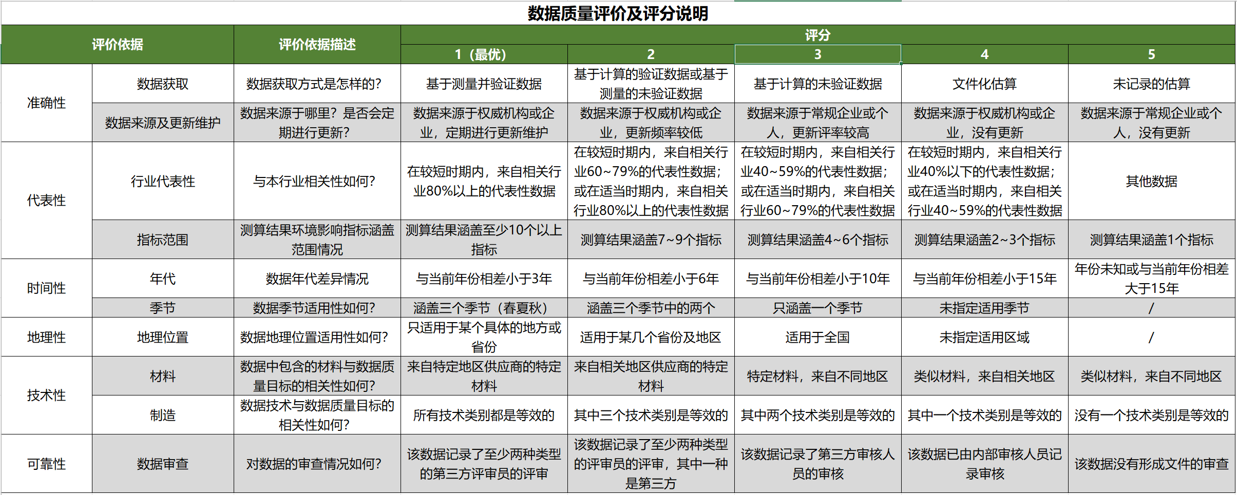 研发团队采用严格的数据收集和验证流程,搭建系统化、科学化的路面基础设施建设碳排放测算基础数据库,同时参考美国联邦公路局(FHWA)制定的数据评价标准,从数据准确性、代表性、时间性、地理性、可靠性五个方面对数据质量进行评分,并将持续监测与更新,反映最新科学研究和技术进展。